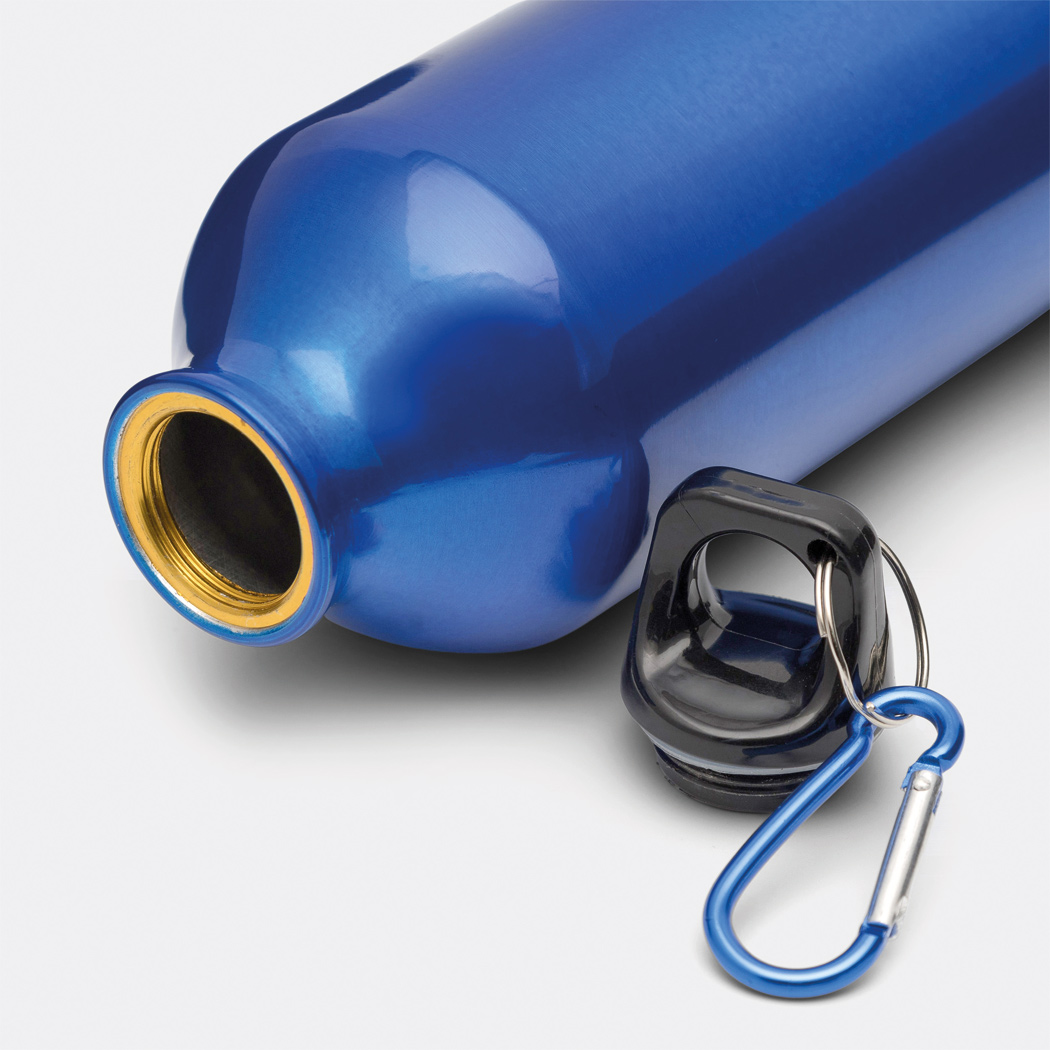 Aluminium-Trinkflasche TRANSIT: Kunststoffverschluss mit farblich abgestimmtem Karabinerhaken (der Karabiner ist NICHT als Sicherung beim Klettern geeignet), Füllmenge ca. 400 ml