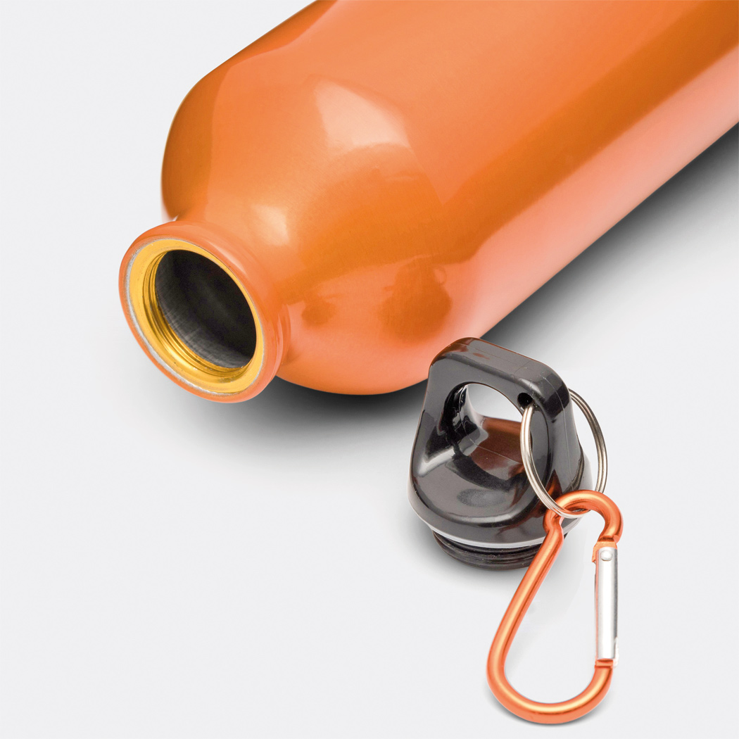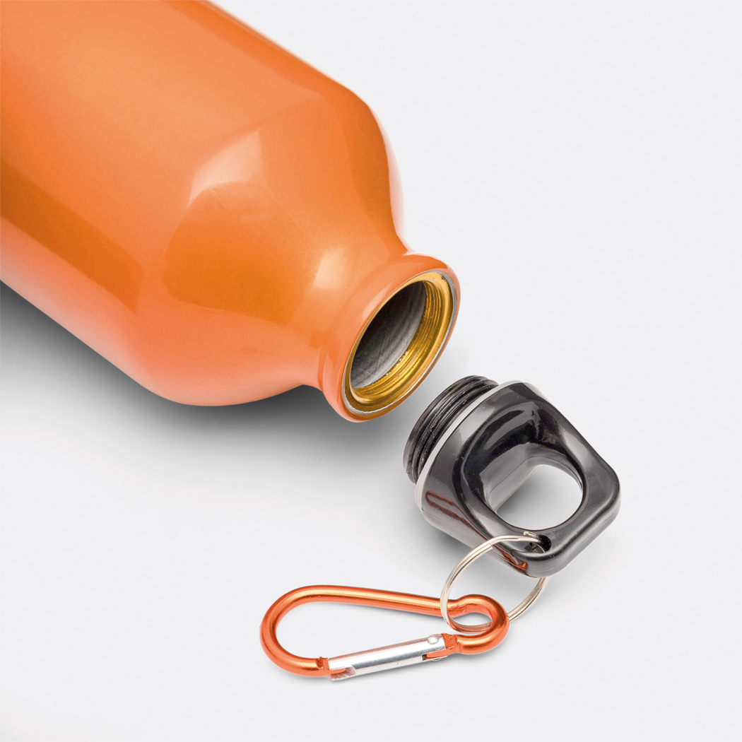 Aluminium-Trinkflasche TRANSIT: Kunststoffverschluss mit farblich abgestimmtem Karabinerhaken (der Karabiner ist NICHT als Sicherung beim Klettern geeignet), Füllmenge ca. 400 ml