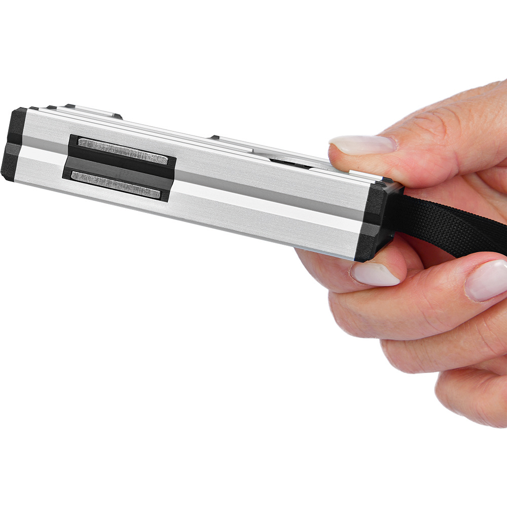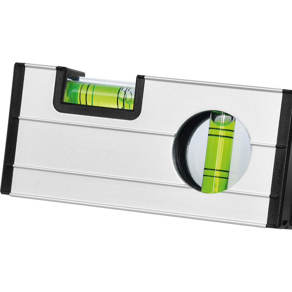Die perfekte Wasserwaage für alle Messaufgaben an engen, unzugänglichen Stellen. Sie ist ebenfalls ein ideales Zweit-Messwerkzeug für alle Handwerker, besonders im Metallbau. Gehäuse: robustes Aluminiumprofil eloxiert mit Verstärkungsrippen. Libellen: Horizontal-Libelle, Vertikal-Libelle, mit 2 Ableseringen für 1%-Neigung. Messgenauigkeit: ± 1,0 mm / m. Ausstattung: Endkappen stoßdämpfend, extrem starker Seltene-Erden-Magnet und V-Nut in der Messfläche, Handschlaufe. Verpackung: schwarze Geschenkverpackung.