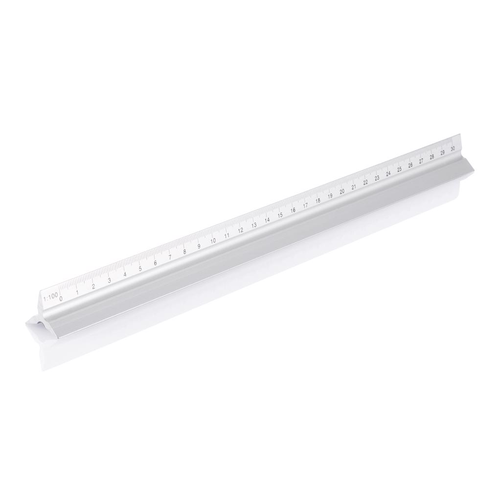 Aluminiumlineal mit 5 verschiedenen Skalen (1:20, 1:25, 1:50, 1:75 und 1:100); 1 Seite ist für die Werbeanbringung vorgesehen.