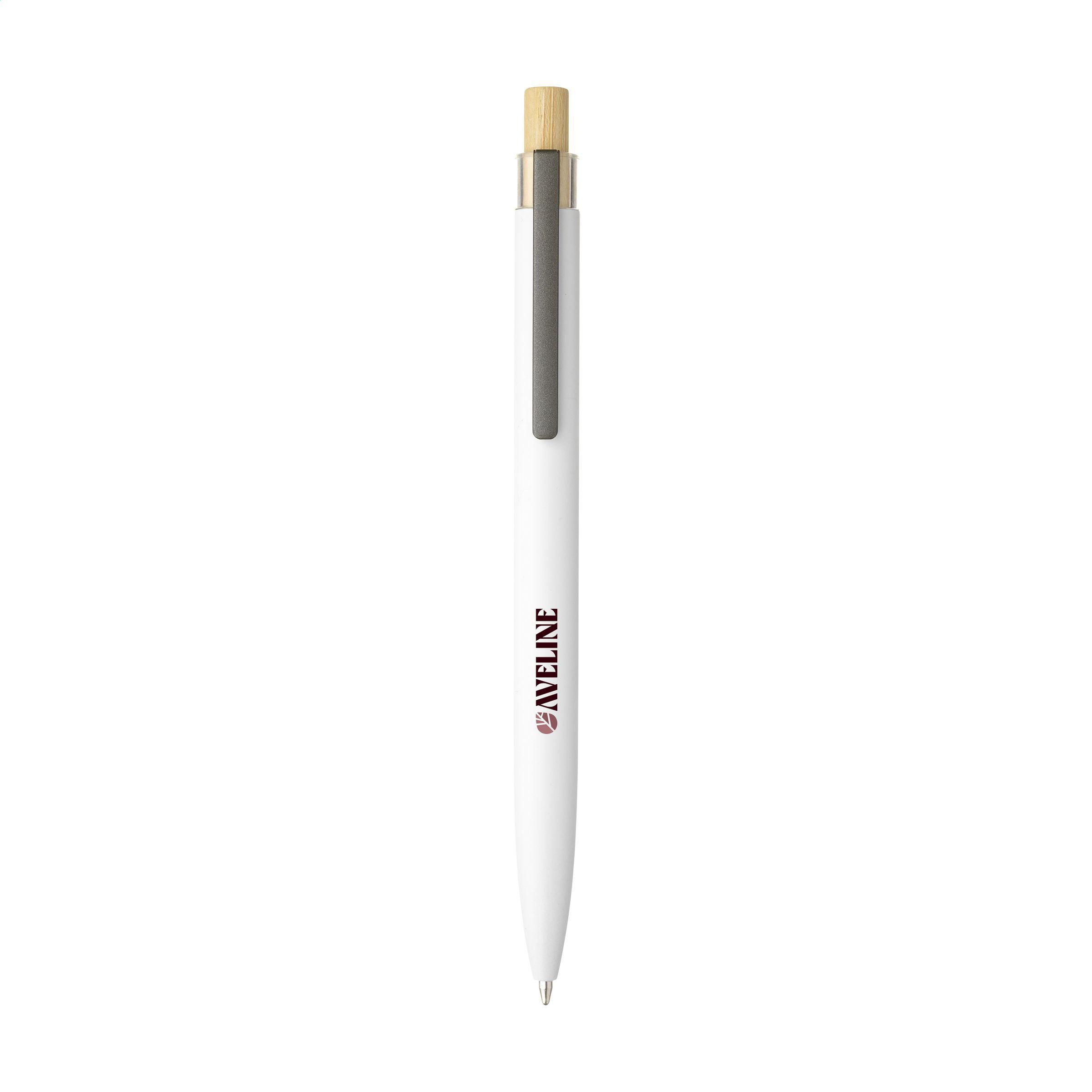 Beschreibung: Modischer, blauschreibender Kugelschreiber mit einem Gehäuse aus 100% recyceltem Aluminium mit mattem Finish. Der Druckknopf aus Bambus ist mit einem transparenten Akzent versehen. Das Gehäuse besteht aus einem Stück und ist standardmäßig mit dem Logo 'Recycled Aluminium' bedruckt. GRS-zertifiziert.Durch die Verwendung von recyceltem Aluminium werden bei der Herstellung dieses Produkts weniger neue Rohstoffe verwendet. Das bedeutet weniger Energieverbrauch und weniger Wasserverbrauch.