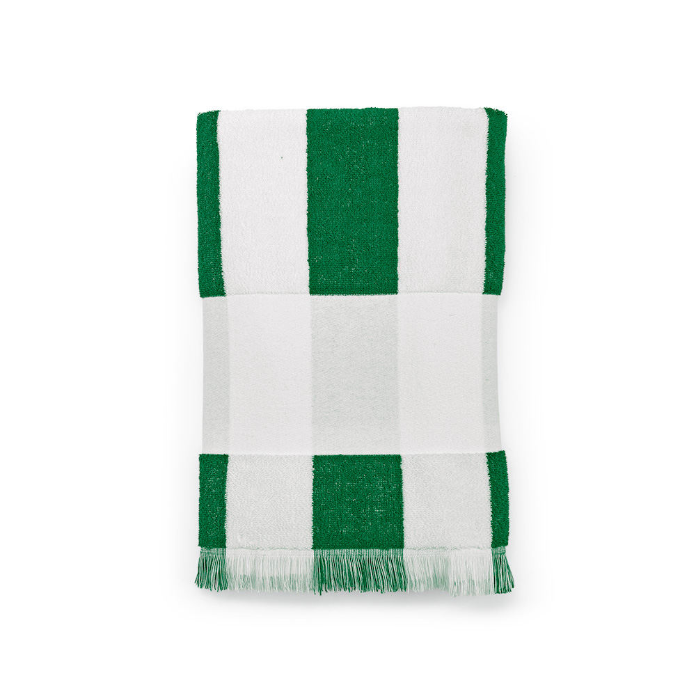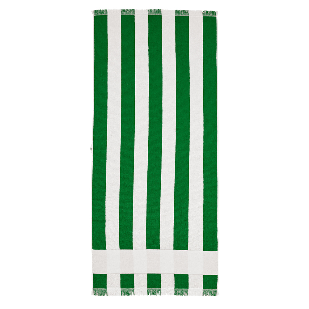Amadeo gestreiftes Strandtuch mit Fransen aus recycelter Baumwolle (60 % recycelte Baumwolle und 40 % Baumwolle). Bietet mit 450 g / m² die perfekte Balance aus Komfort und Nachhaltigkeit. Großzügiges Format von 80 x 180 cm mit vertikalen Streifen. Verpackt in einem biologisch abbaubaren Polybeutel. Erhältlich in 5 Farben. Hergestellt in Portugal.