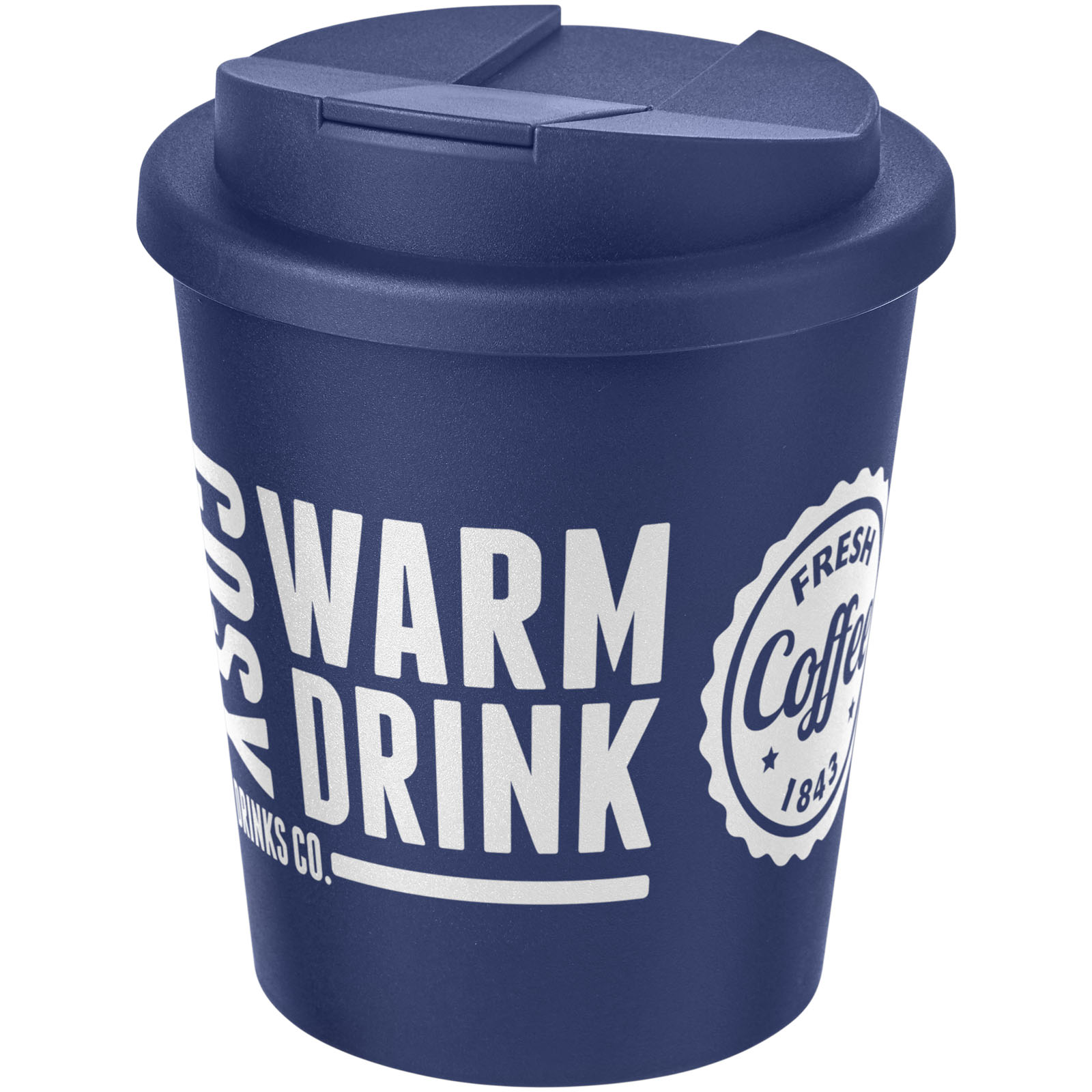 Kompakter, doppelwandiger Isolierbecher mit auslaufsicherem Schraubverschluss. Trinköffnung mit Clip verhindert auslaufen und schließt ohne Silikon. Passt unter die meisten Kaffeemaschinen. Das Fassungsvermögen beträgt 250 ml. Mischen und kombinieren Sie Farben, um Ihren perfekten Becher zu kreieren. Hergestellt in Großbritannien. EN12875-1-konform, spülmaschinen- und mikrowellengeeignet. Verpackt in einem recycelten PE-Kunststoffbeutel.