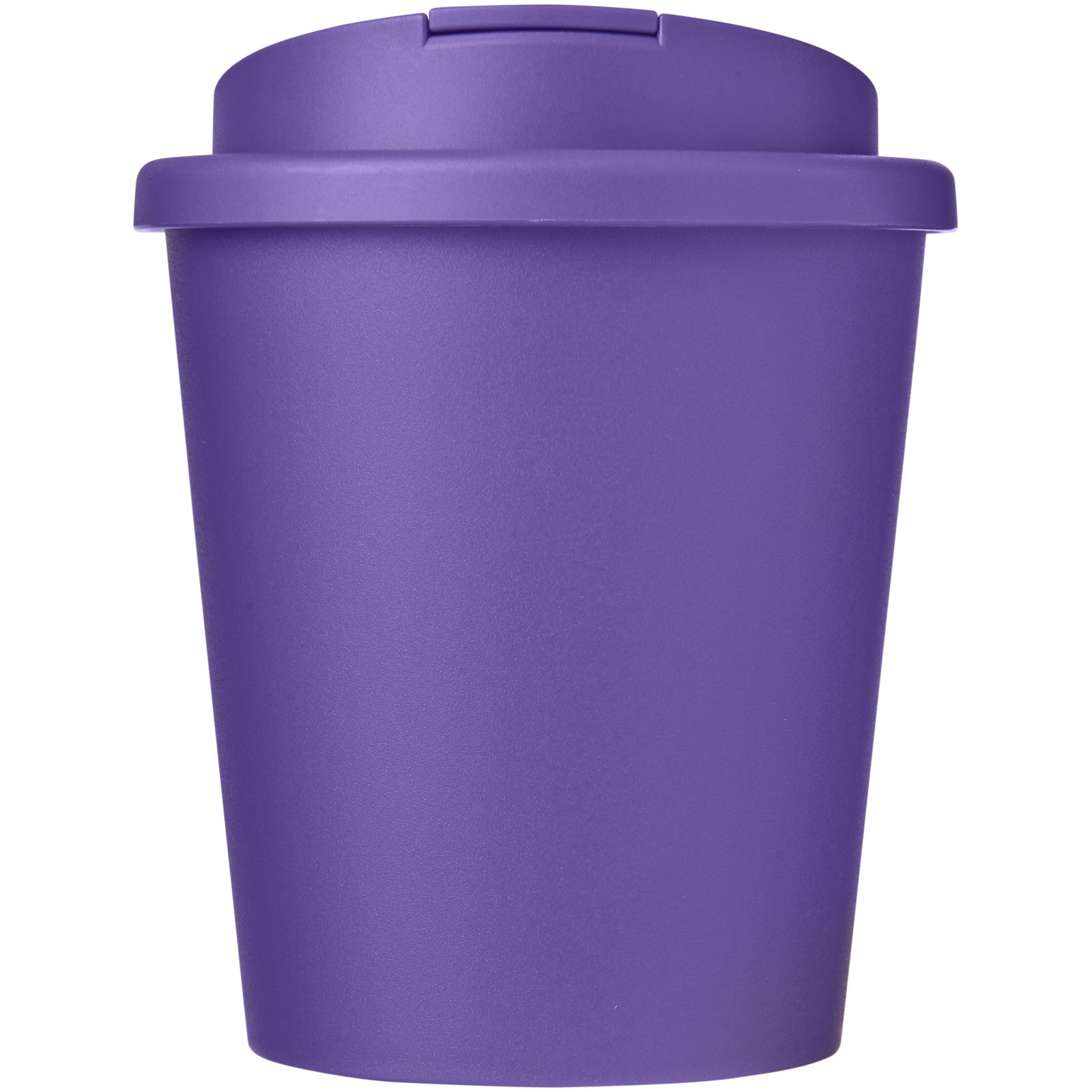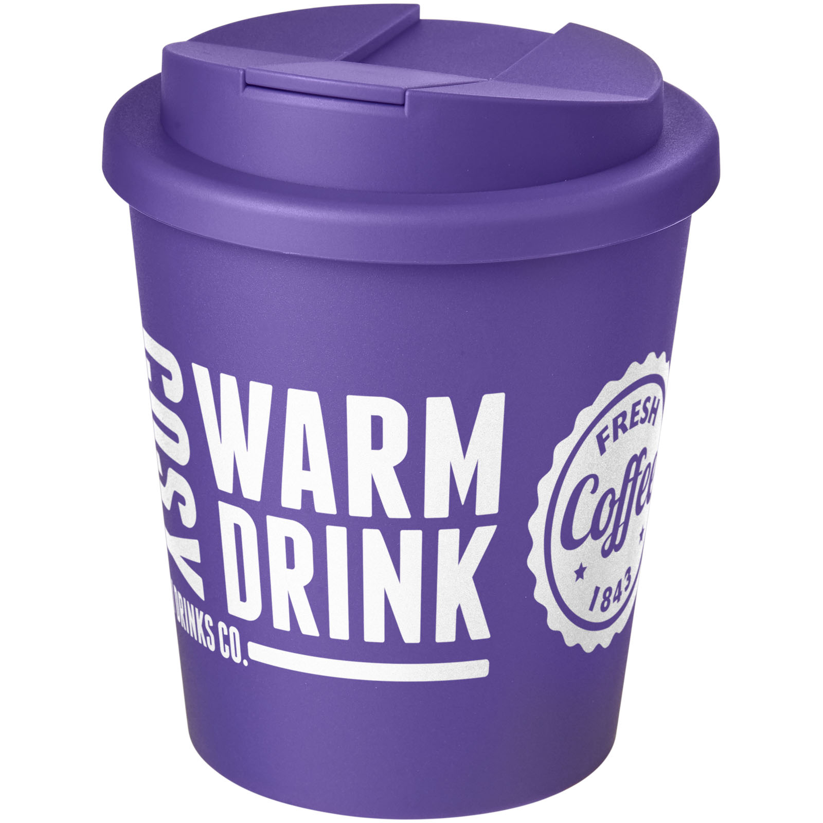 Kompakter, doppelwandiger Isolierbecher mit auslaufsicherem Schraubverschluss. Trinköffnung mit Clip verhindert auslaufen und schließt ohne Silikon. Passt unter die meisten Kaffeemaschinen. Das Fassungsvermögen beträgt 250 ml. Mischen und kombinieren Sie Farben, um Ihren perfekten Becher zu kreieren. Hergestellt in Großbritannien. EN12875-1-konform, spülmaschinen- und mikrowellengeeignet. Verpackt in einem recycelten PE-Kunststoffbeutel.