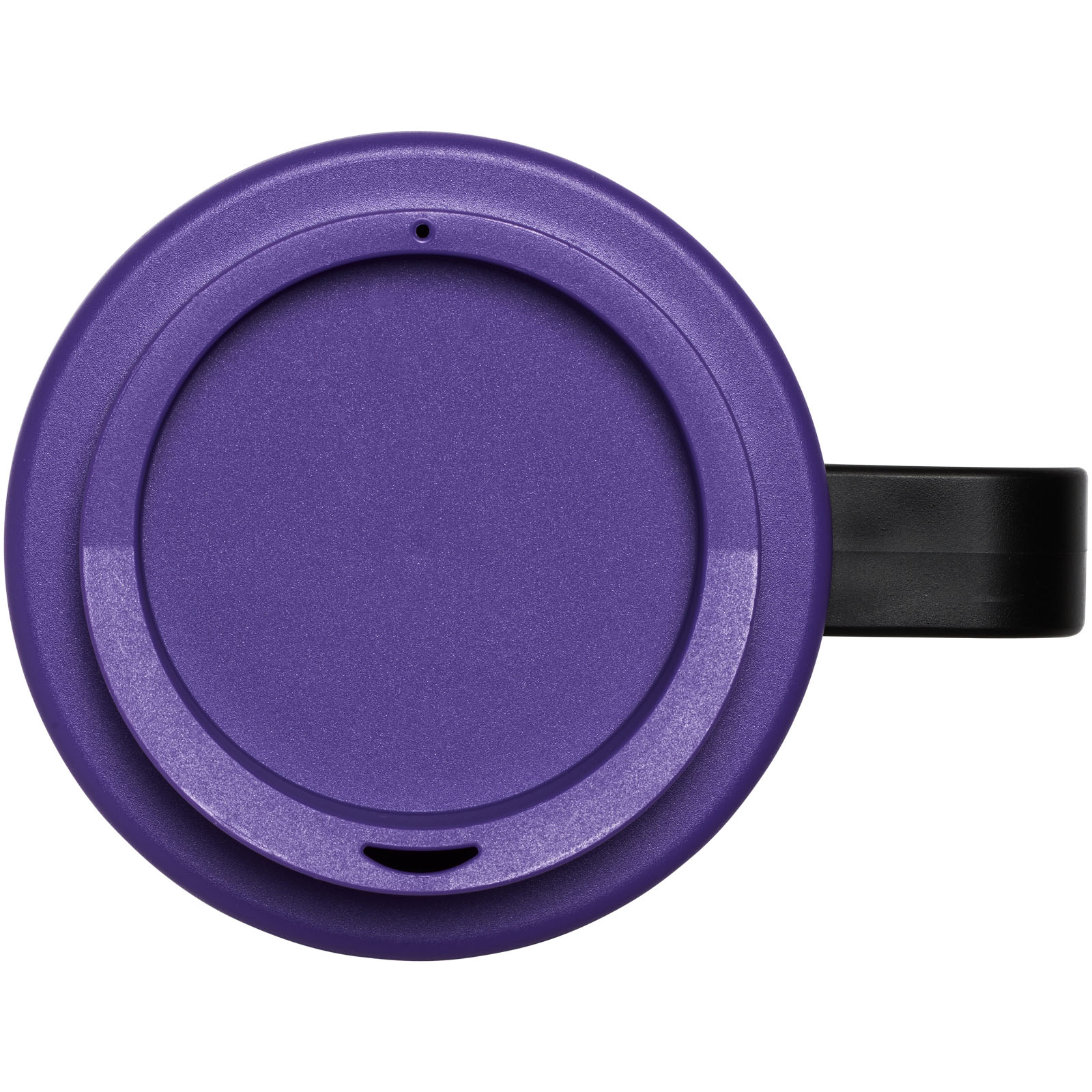 Doppelwandiger Isolierbecher mit Schraubverschluss und integriertem Griff. Mischen und kombinieren Sie Farben, um Ihren perfekten Becher zu kreieren. Hergestellt in Großbritannien. Präsentiert in einer weißen Geschenkschachtel. EN12875-1-konform, spülmaschinen- und mikrowellengeeignet. Verpackt in einem recycelten PE-Kunststoffbeutel. BPA-frei.