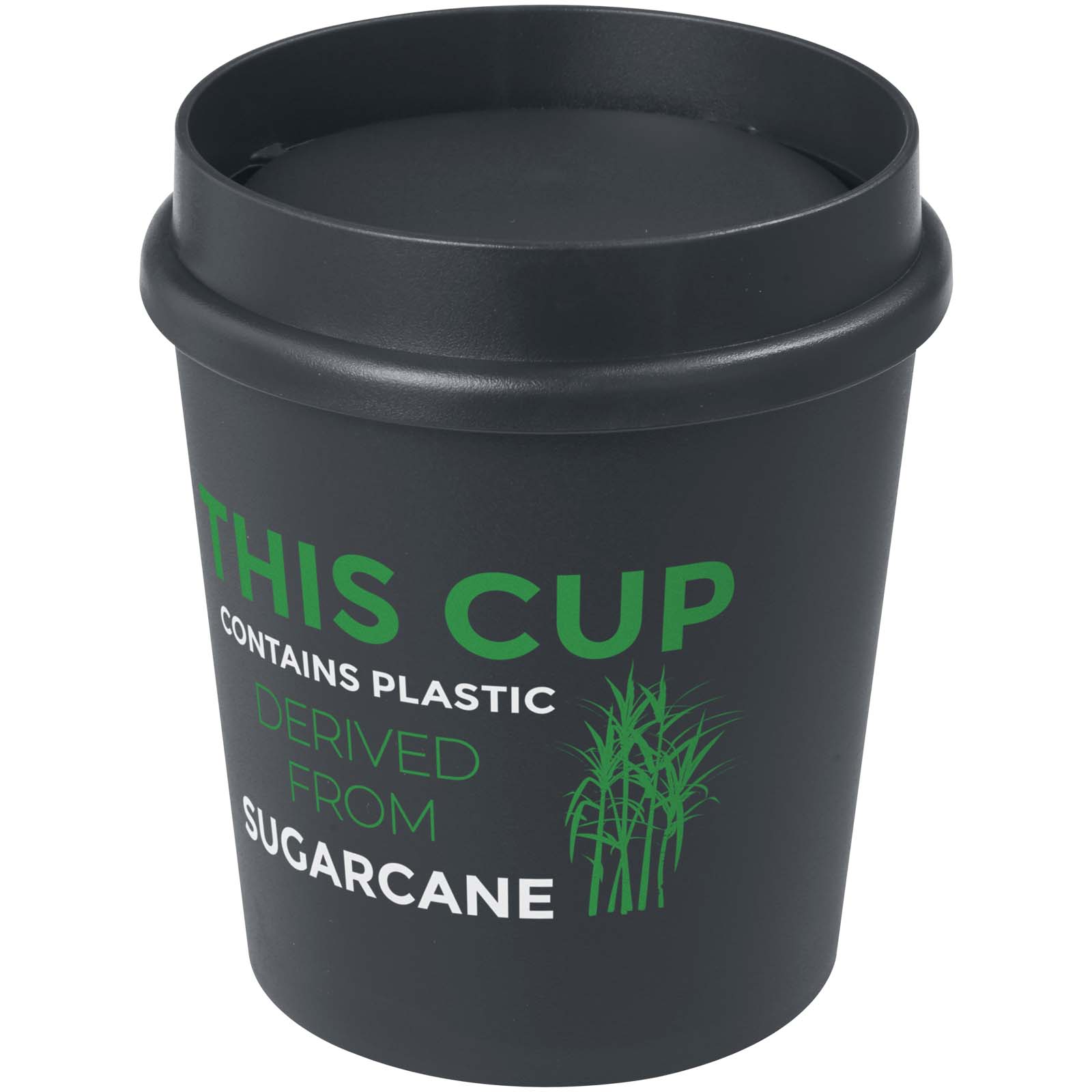 Americano® Switch Renew Einwandiger Becher mit einem Fassungsvermögen von 200 ml. Der innovative 360°-Deckel ermöglicht es Ihnen, von jeder Seite des Bechers zu trinken, und verstärkt das Aroma Ihres gewählten Getränks. Der Becher enthält 25 % Kunststoff, der aus Zuckerrohr gewonnen wird, wodurch der Bedarf an neuem Kunststoff reduziert wird. Der Deckel und der Becher sind silikonfrei, spülmaschinenfest, mikrowellengeeignet und BPA-frei. Als Teil der Americano® Switch-Familie können Sie Ihren Becher durch Hinzufügen eines Deckels und eines Griffs nach Belieben individuell gestalten. Hergestellt in UK. Verpackt in einem recycelten PE-Kunststoffbeutel.