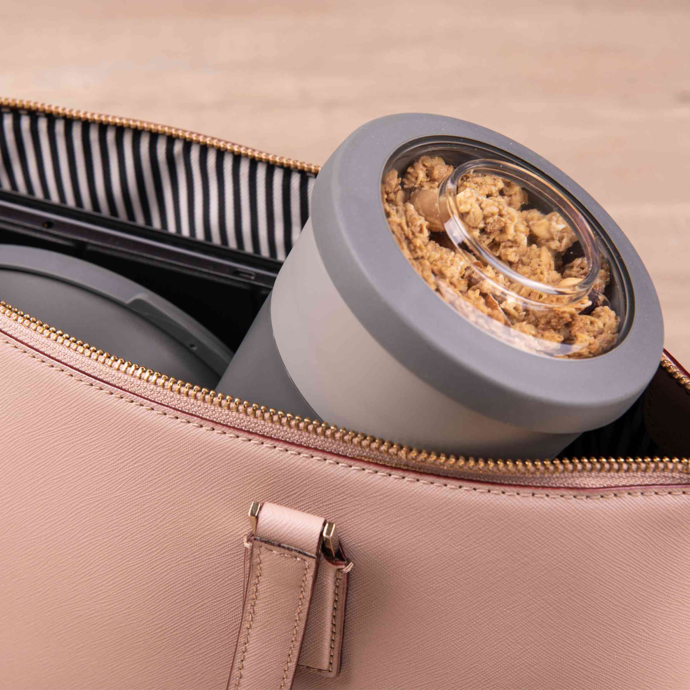 Mit der Morning & Noon Bowl können Sie Ihren Lieblingsjoghurt, Smoothie oder Salat auch unterwegs genießen. Möchten Sie Ihren Lieblingsbelag knusprig halten? Dann werfen Sie einen Blick unter den Deckel, wo Sie ein Fach finden, in dem Sie Ihre Lieblings Toppings aufbewahren können. Fügen Sie die Toppings im letzten Moment hinzu und genießen Sie Ihr Lieblingsfrühstück oder -mittagessen in vollen Zügen. Die Morning & Noon Bowl ist für die Spülmaschine, den Gefrierschrank und die Mikrowelle geeignet (ohne Deckel). Die Morning & Noon Bowl kann mit einer Gravur auf den Deckel oder auf der Vorderseite und einem Doming auf dem Deckel personalisiert werden. Außerdem gibt es die Möglichkeit, einen Göffel und ein Gummiband mit einem vollfarbigen Thermodruck hinzuzufügen. Diese Optionen machen es noch einfacher, Ihr Essen unterwegs zu genießen.