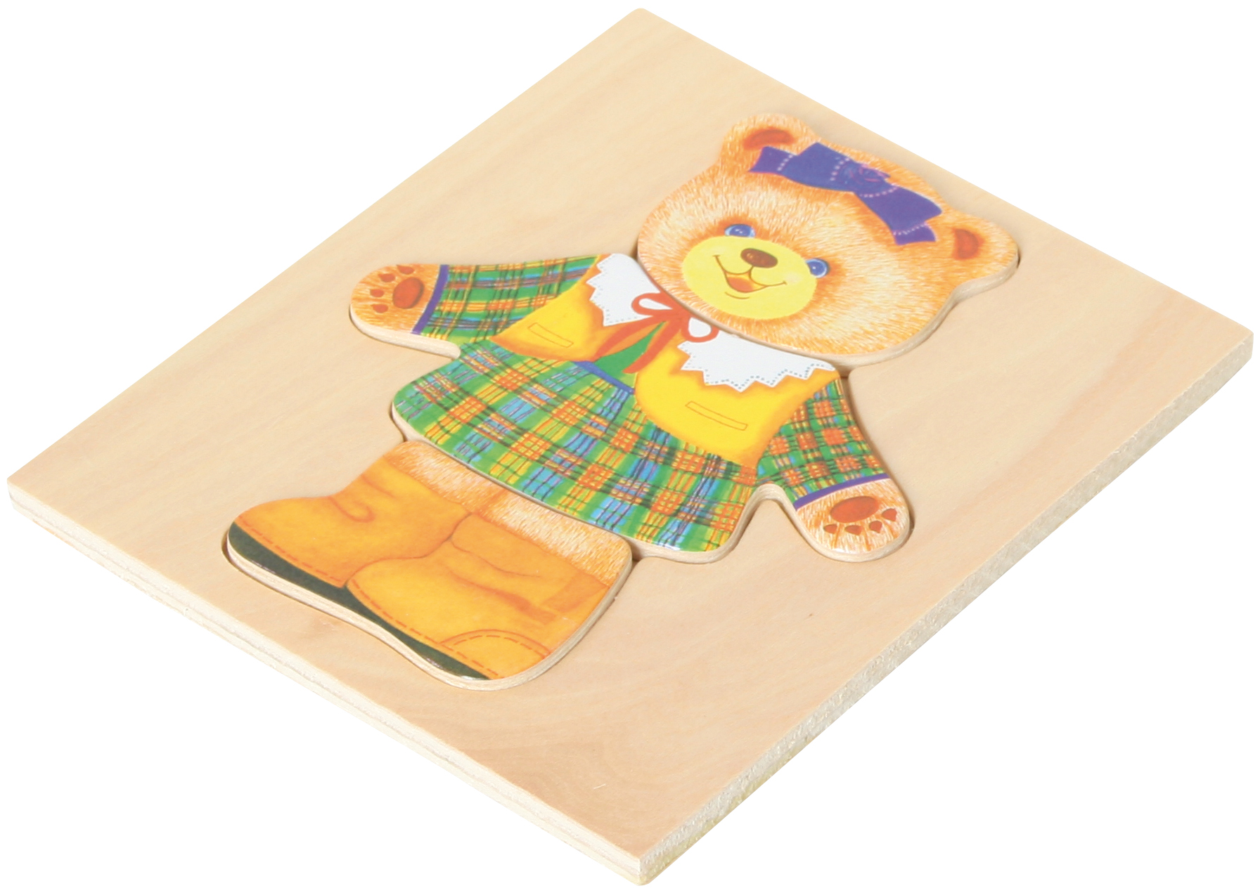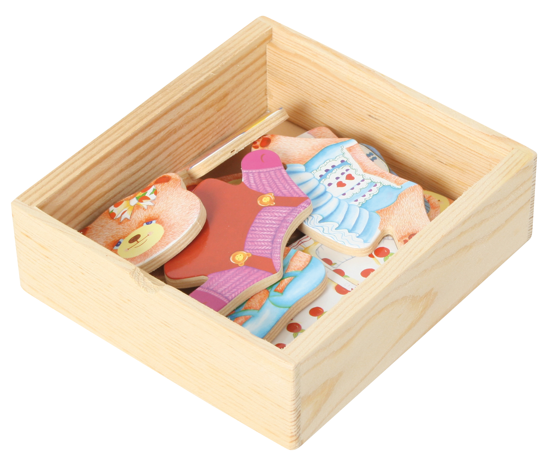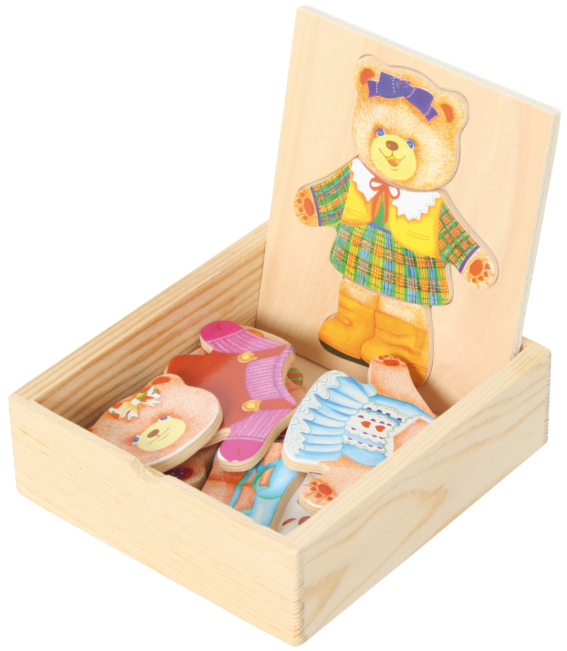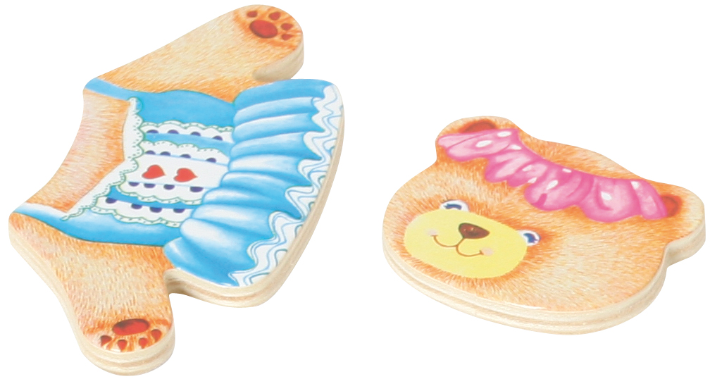 Aus sechs unterschiedlich gekleideten Mädchen lassen sich süße Bärchen zaubern. Die einfachen Holz-Puzzleteile sind ideal für kleine Kinder.