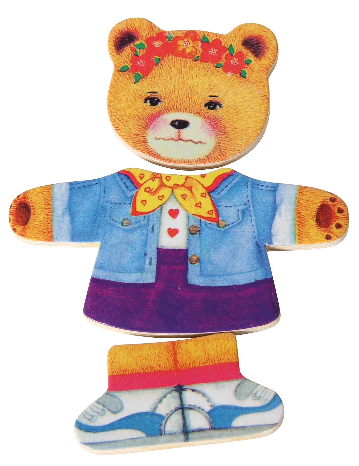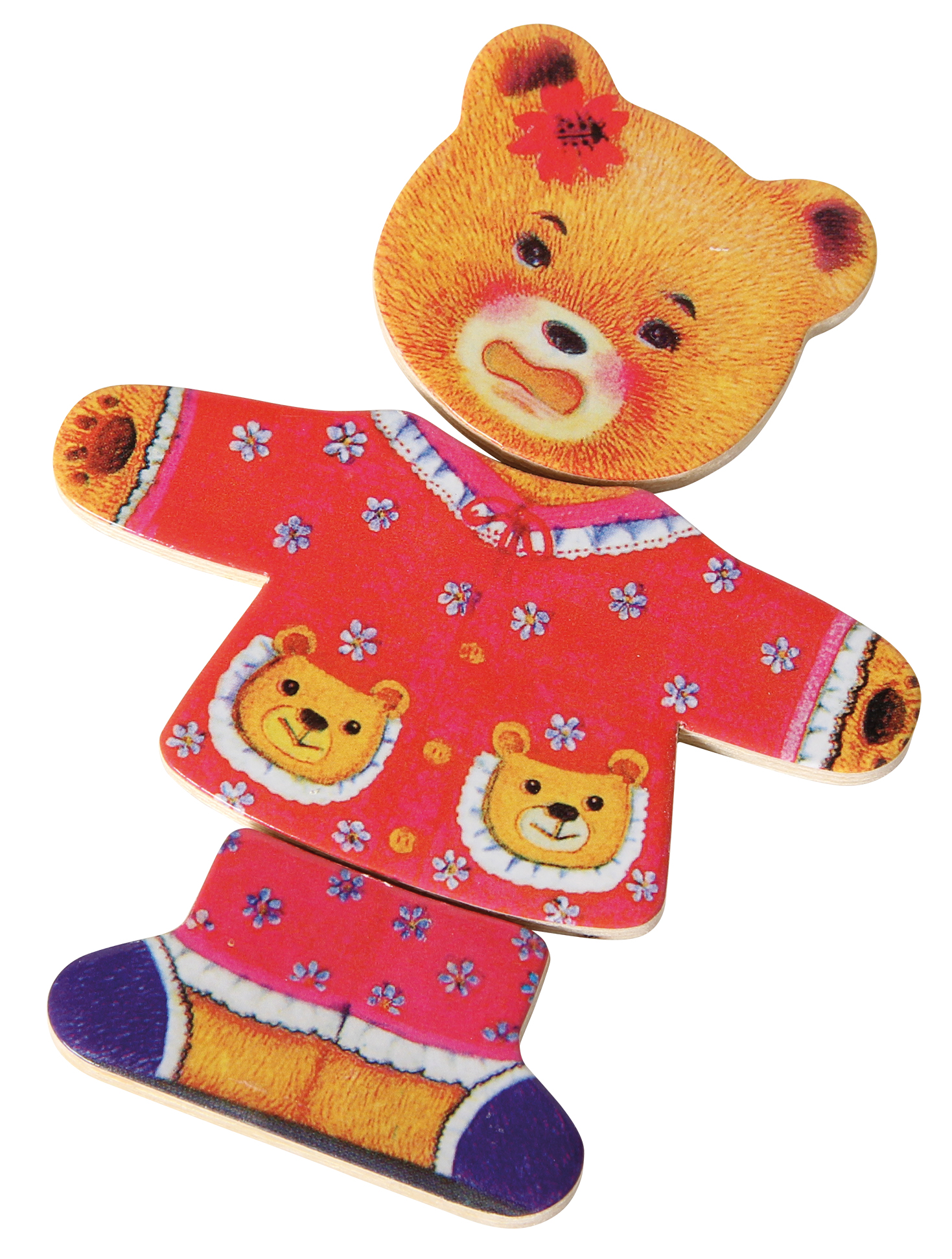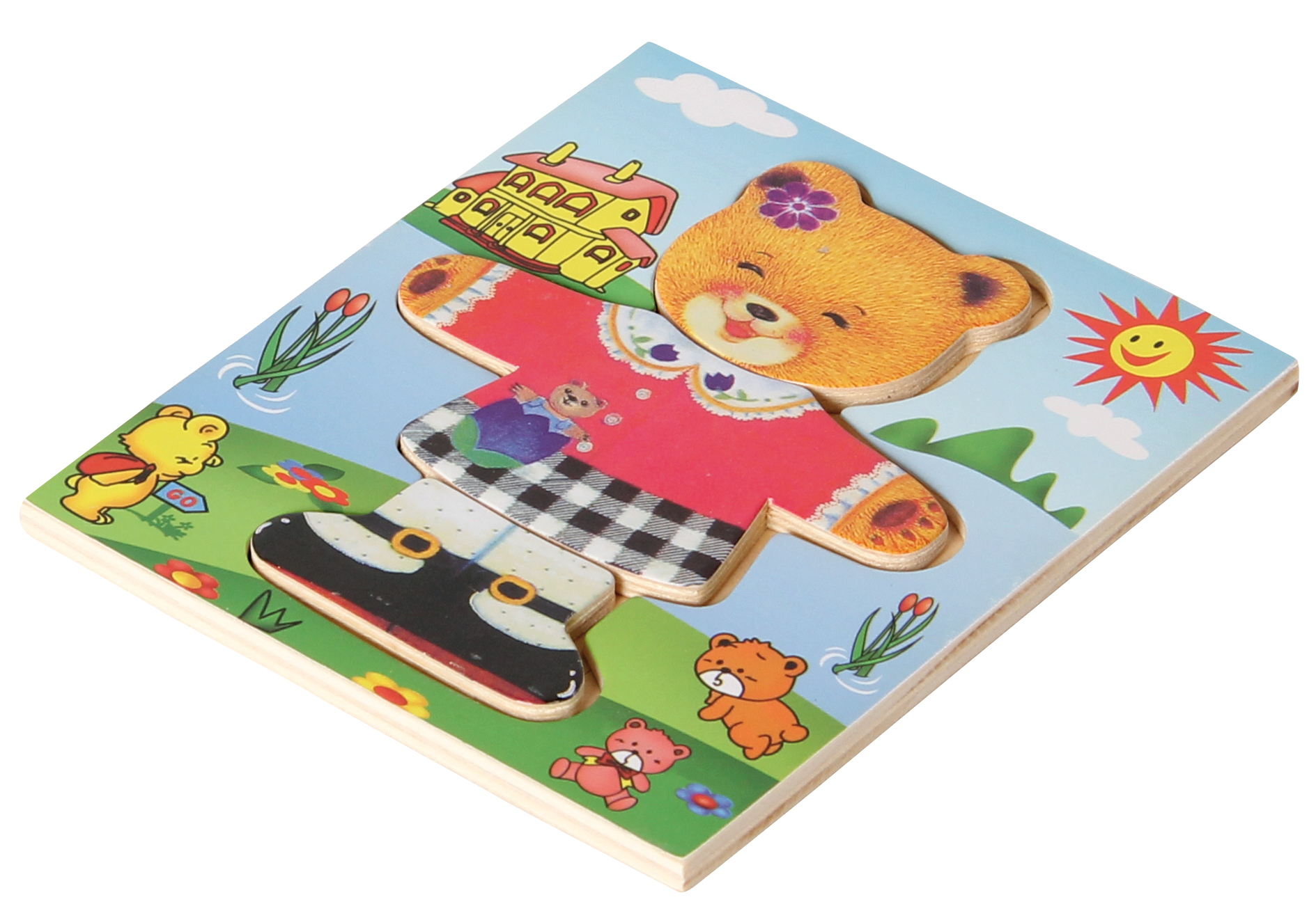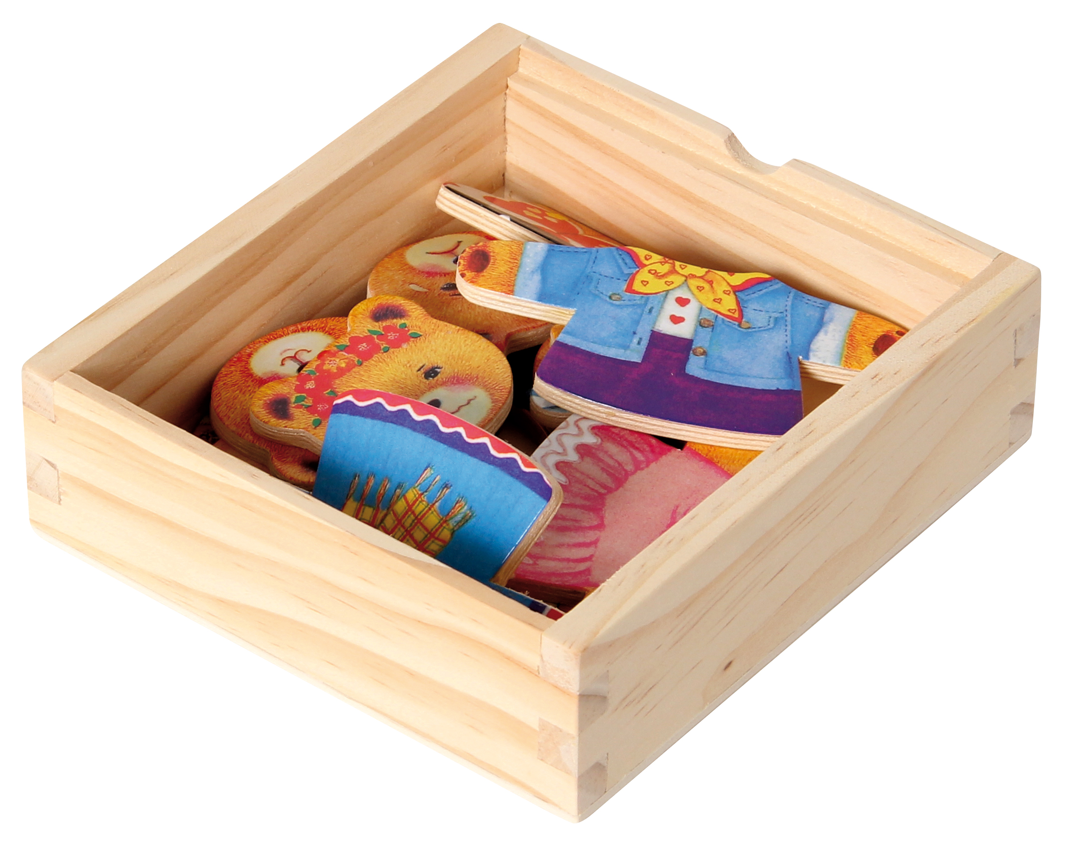 Hochwertiges Holz-Legepuzzle für Vorschulkinder. Aus den 18 verschiedenen Puzzleteilen lassen sich viele lustige Bären-Mädchen zusammenstellen. In der Holzbox sind die Einzelteile gut verstaut.