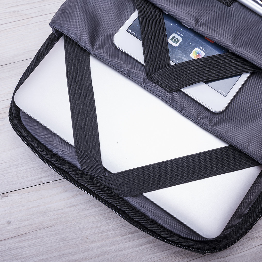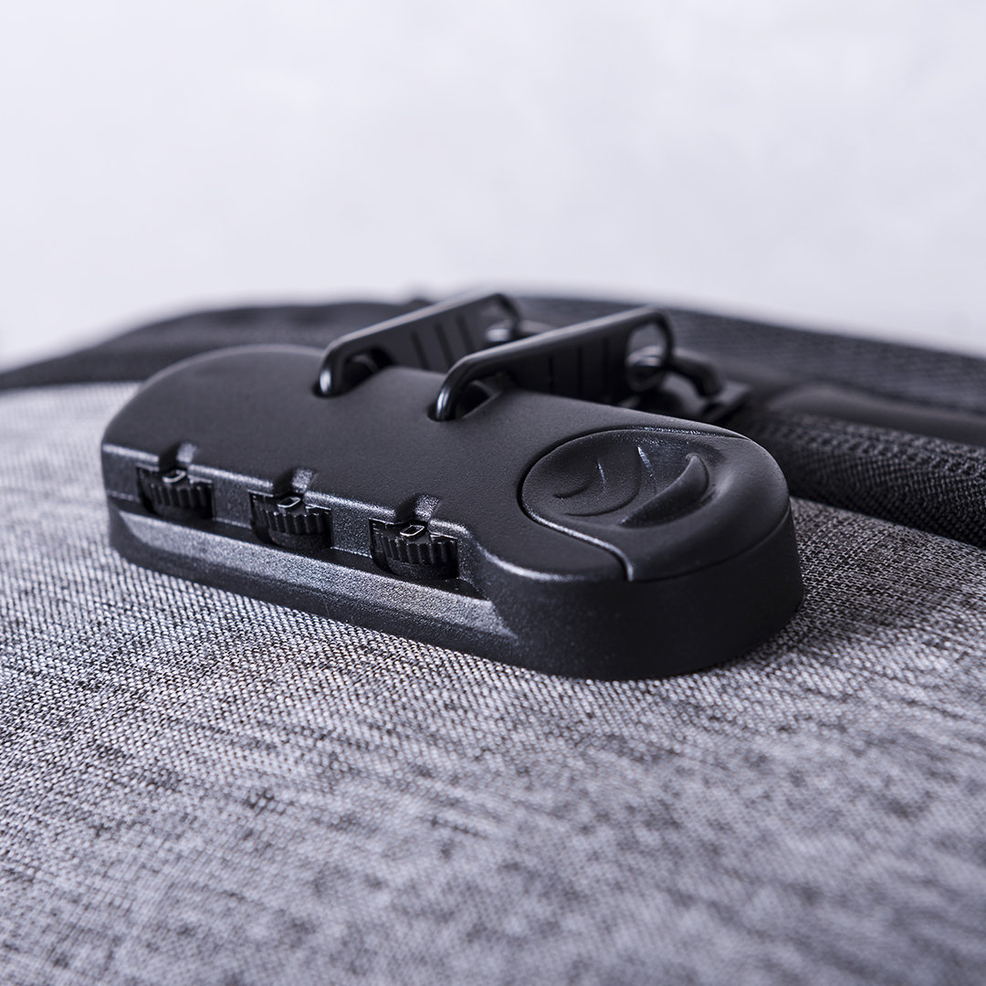 Business-Rucksack aus hochwertigem Nylon - wasserabweisend, gesichert gegen Diebstahl sowie schnitt- und reißfest. Mit Vorhängeschloss mit Passwort, reflektierendem Rückenband und Befestigungsgurt für die Anbringung an einem Trolley. Mit sicherem Fach auf der Rückseite zur Aufbewahrung von Wertsachen. Innenfach mit USB für den Anschluss eines externen Akkus (nicht inklusive). Micro-USB-Kabel von 1 Meter Länge für komfortables Aufladen von Mobilgeräten inklusive. Ausgang für Kopfhörerkabel und kleines Fach im rechten Schultergurt für einfachen Zugriff auf häufig genutzte Karten. 180º Öffnung für einfachen Zugang zum Interieur des Rucksacks. Zwei separate, gepolsterte Innenfächer für Laptops von bis zu 15 Zoll und für Tablets von bis zu 10 Zoll. Mit einer Vielzahl von Innen- und Außentaschen. Schultergurte und Rückenpanel mit ergonomischer Polsterung.