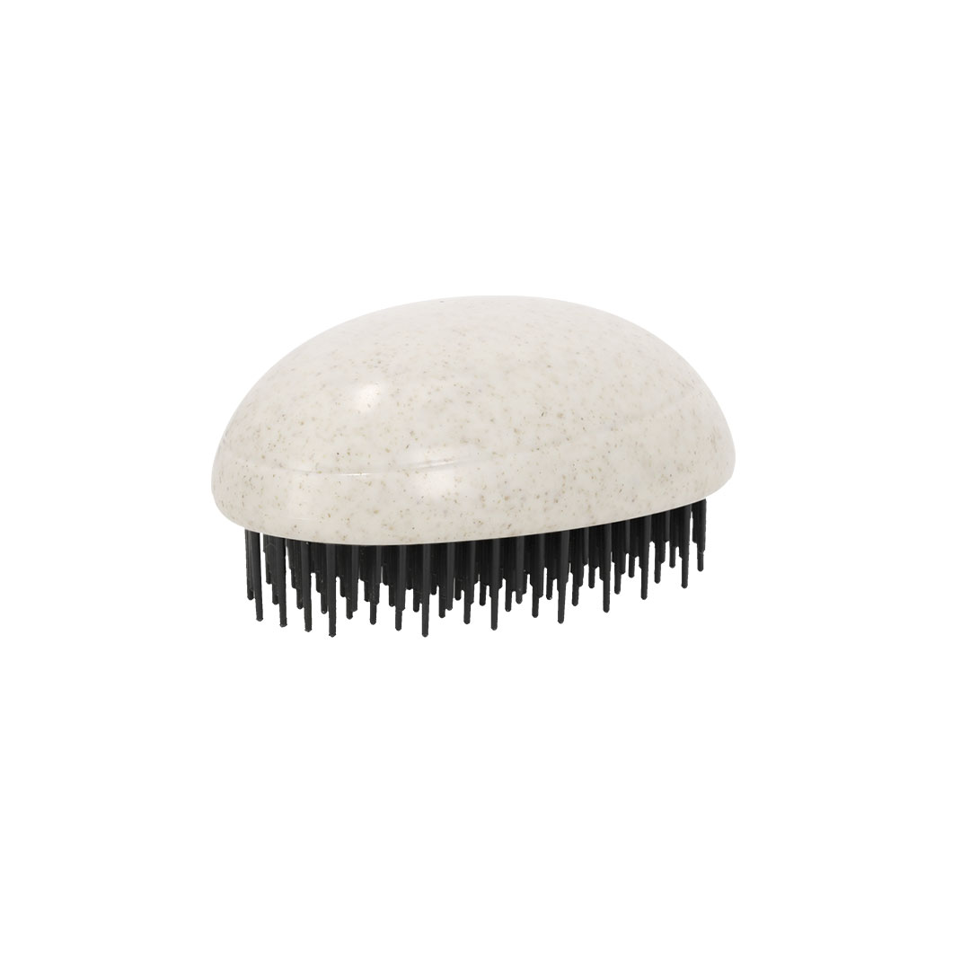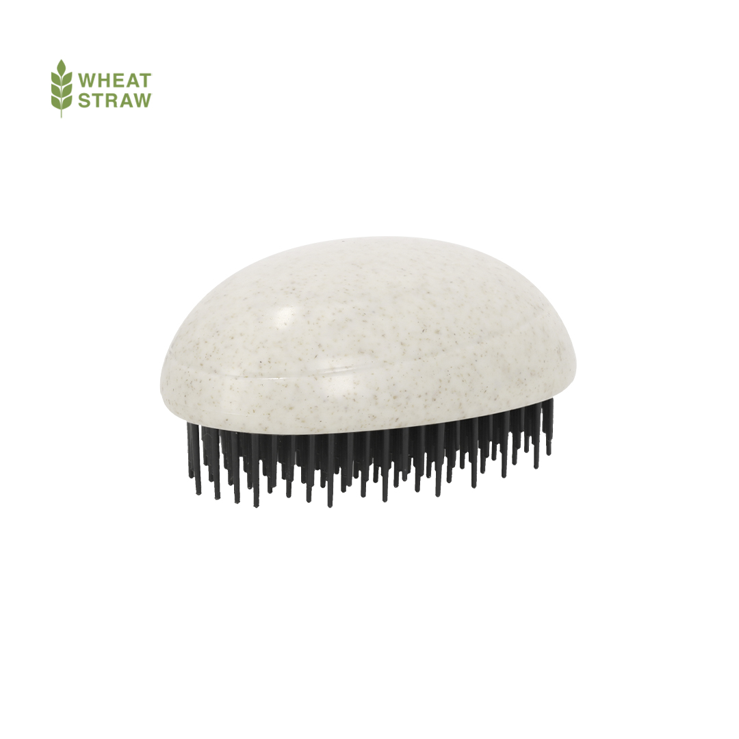 Antiknotenbürste mit Körper aus Weizenstroh und schwarzen flexiblen ABS-Stiften. Mit Antiknotensystem. Weizenstroh fördert die Verwendung natürlicher Rohstoffe und reduziert so die Schadstoffemissionen.