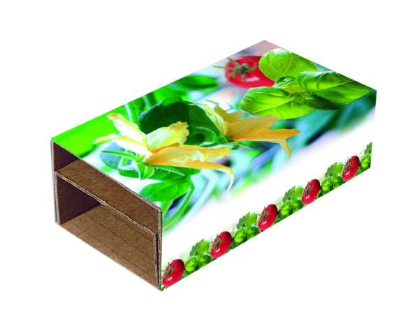 Zwei Tontöpfchen jeweils Ø 4 cm im Naturkarton geschützt eingebettet mit Erdtabletten und Samen. Ein würziges Basilikum-Tomaten Duo. Für den Werbeaufdruck ist Platz auf der Vorderseite. Zur eigenen Gestaltung nach Ihren Themen und Samenwünschen bietet sich die Banderole an, ab 250 Stück.