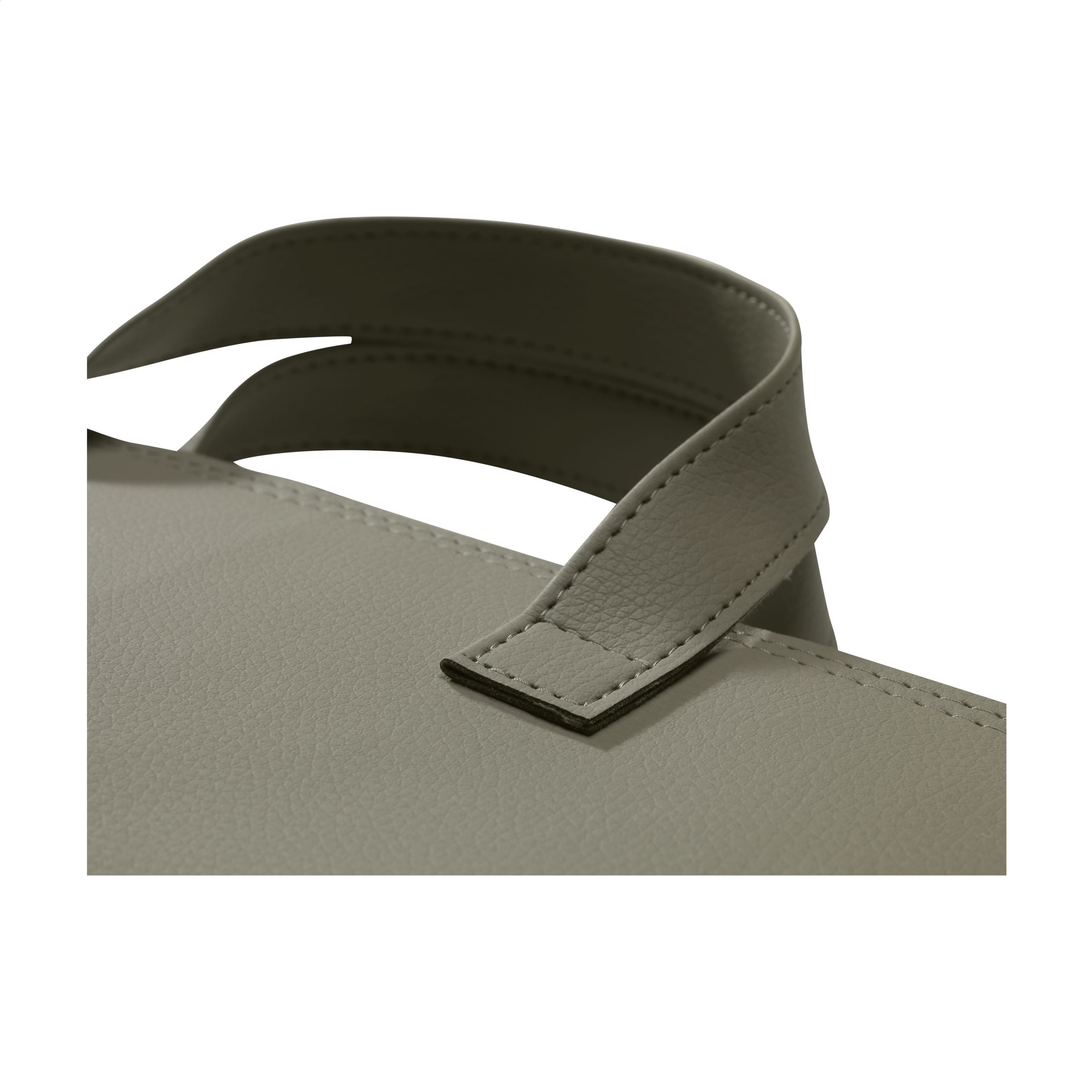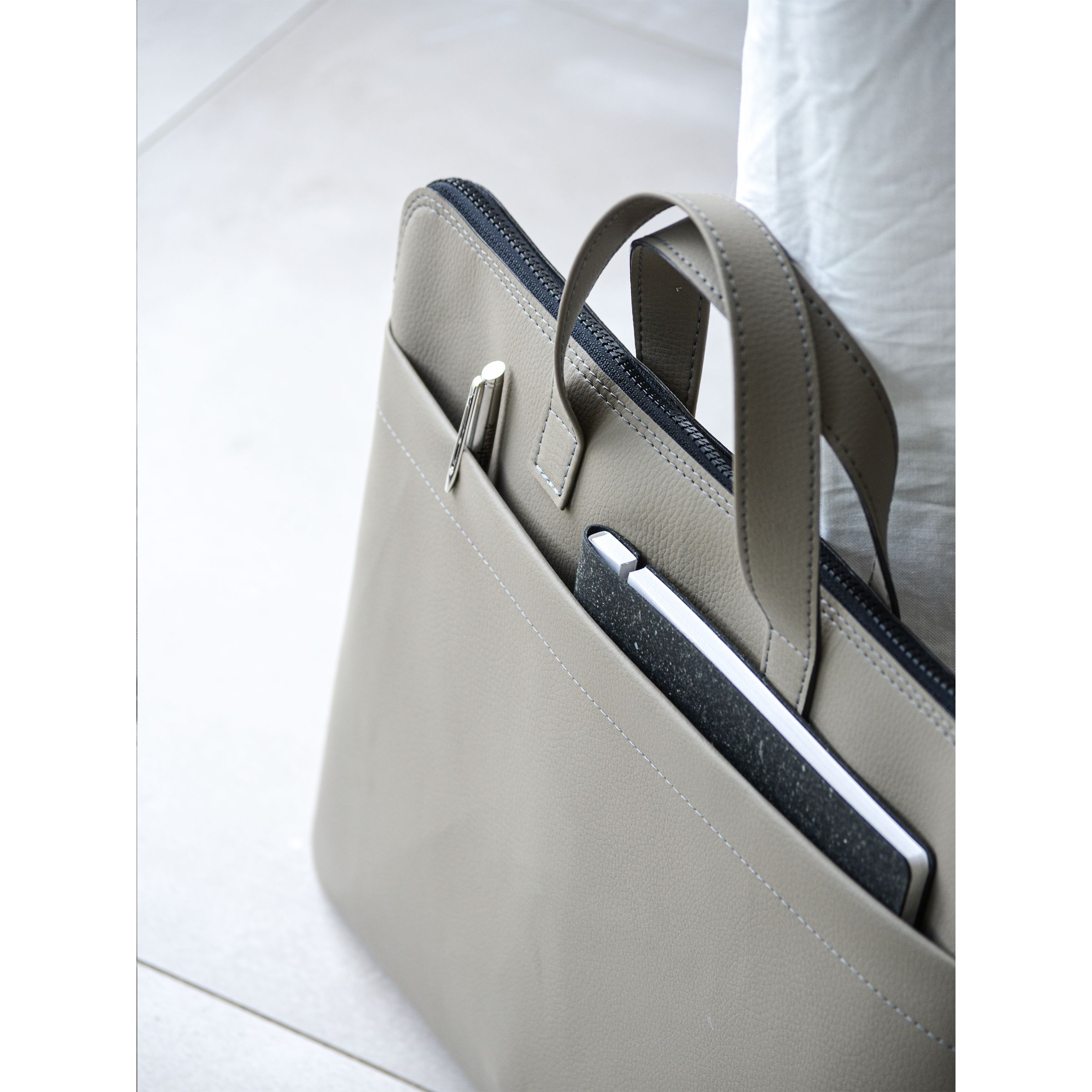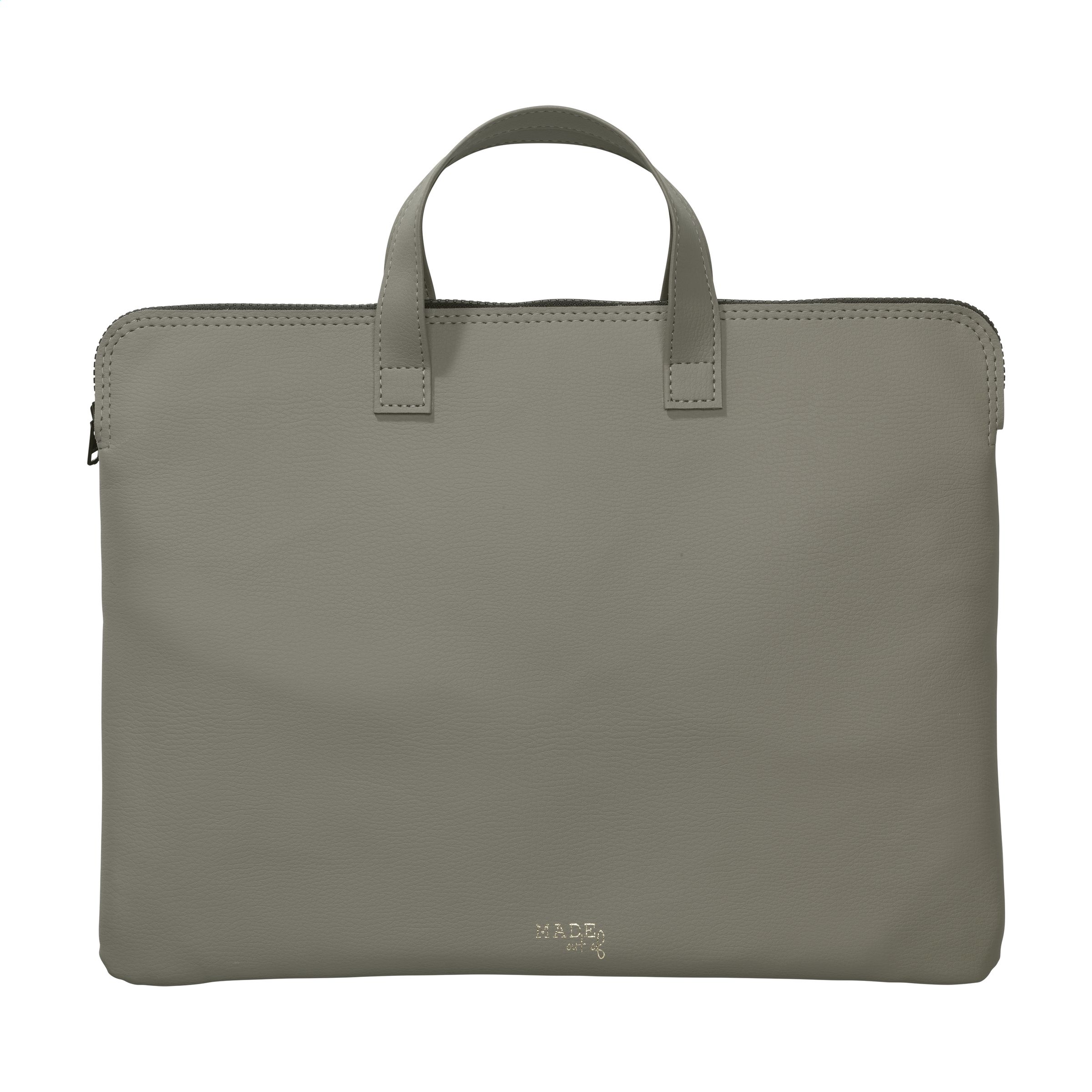 Eine luxuriöse 15/16-Zoll-Design-Laptoptasche der Marke MADE out of, die aus veganem Leder gefertigt ist. Das vegane Leder ist eine pflanzliche Alternative zu Leder. Das Fruchtfleisch von Äpfeln ist die Grundlage für die Herstellung von diesem veganem Leder, das nicht nur wie Leder aussieht, sondern sich auch so anfühlt. Die Abfälle aus den Äpfeln werden aufbereitet und anschließend mit einer Mischung aus PU, Polyester und Baumwolle verarbeitet. Die Laptoptasche hat einen YKK-Reißverschluss, zwei Griffe und ein Fach auf der Vorderseite. Das großzügige Hauptfach ist mit einem Futter aus 100% recyceltem PET ausgestattet und bietet genügend Platz für beispielsweise ein Ladegerät, Dokumente und einen Notizblock. Geeignet für die Aufbewahrung und den sicheren Transport eines Laptops bis zu 16 Zoll. So können Sie alles an einer Stelle aufbewahren, auch wenn Sie unterwegs sind. Dieses Spitzenprodukt ist handgefertigt. Niederländisches Design. Hergestellt in den Niederlanden.