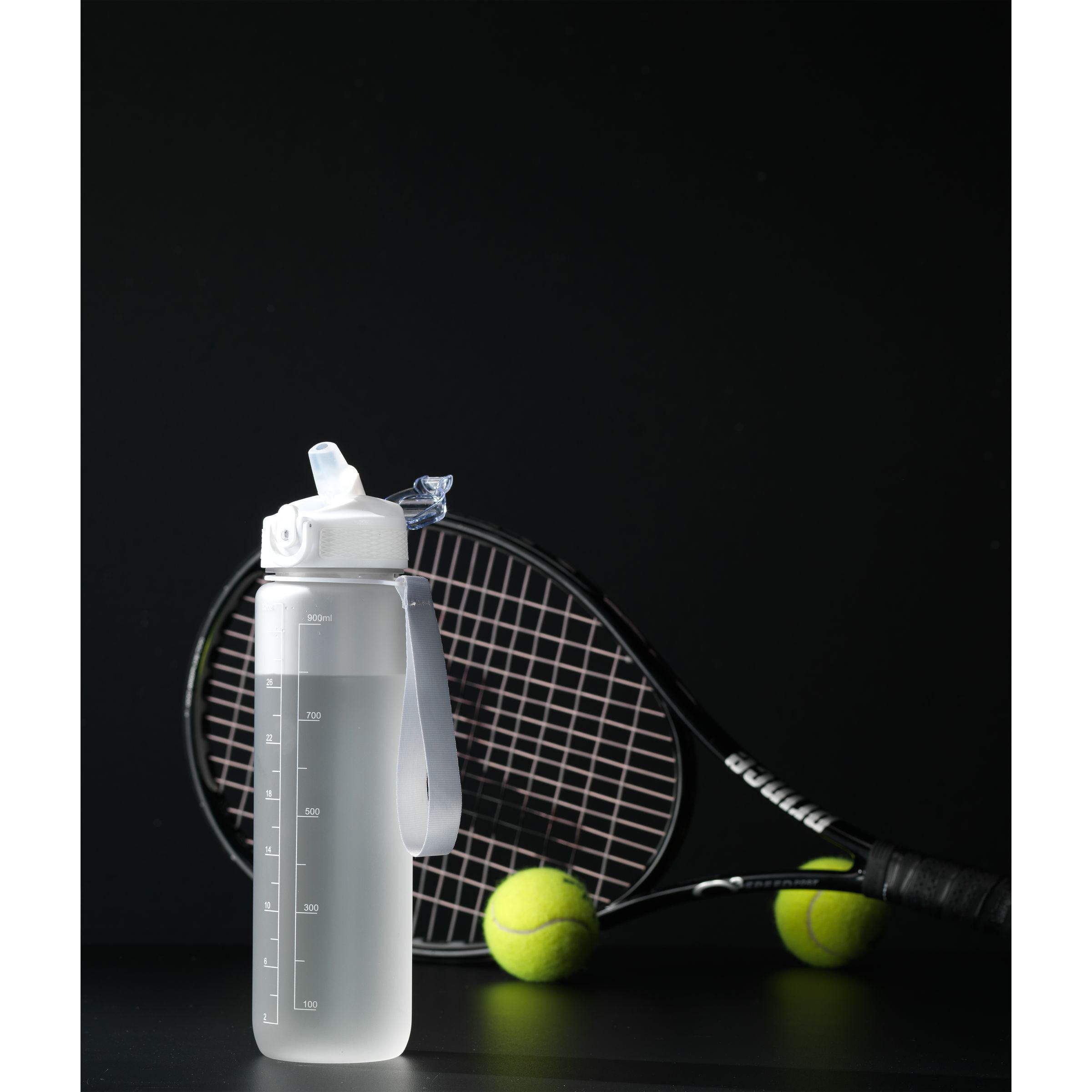 Funktionelle Wasserflasche aus recyceltem PET. Der Schraubverschluss verfügt über einen Trinkauslauf mit Strohhalm, eine transparente Schutzkappe gegen Auslaufen und Verschmutzung sowie ein Verschlusssystem. Einhändig bedienbar und leicht an der Trage-/Handschlaufe zu tragen. Mit Anzeige des Inhalts in ml und oz. Diese Flasche eignet sich für kalte Getränke und ist ideal für den Gebrauch bei sportlichen Aktivitäten. Nicht spülmaschinengeeignet. Fassungsvermögen: 1.000 ml. RCS-zertifiziert. Gesamtes recyceltes Material: 66%.