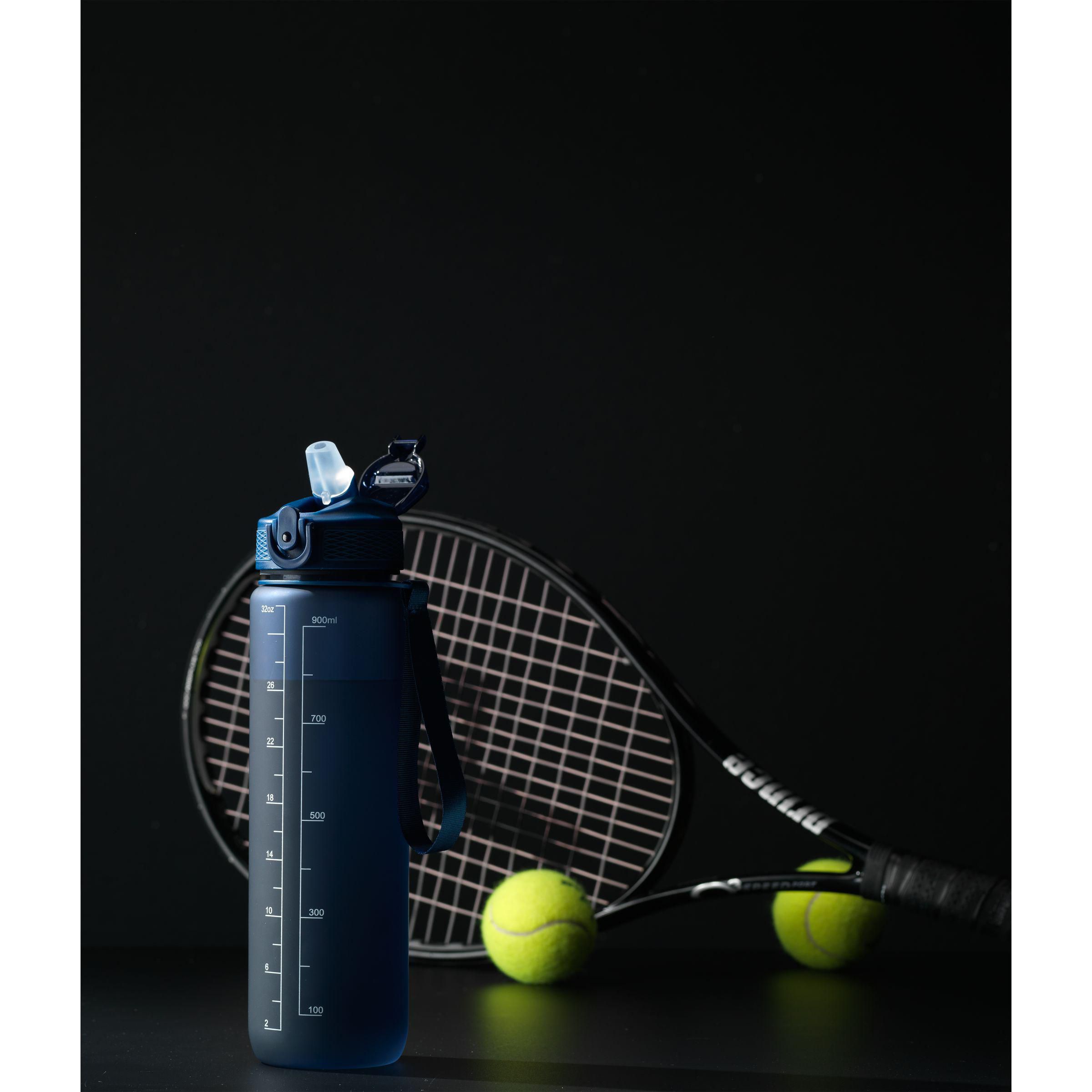 Funktionelle Wasserflasche aus recyceltem PET. Der Schraubverschluss verfügt über einen Trinkauslauf mit Strohhalm, eine transparente Schutzkappe gegen Auslaufen und Verschmutzung sowie ein Verschlusssystem. Einhändig bedienbar und leicht an der Trage-/Handschlaufe zu tragen. Mit Anzeige des Inhalts in ml und oz. Diese Flasche eignet sich für kalte Getränke und ist ideal für den Gebrauch bei sportlichen Aktivitäten. Nicht spülmaschinengeeignet. Fassungsvermögen: 1.000 ml. RCS-zertifiziert. Gesamtes recyceltes Material: 66%.
