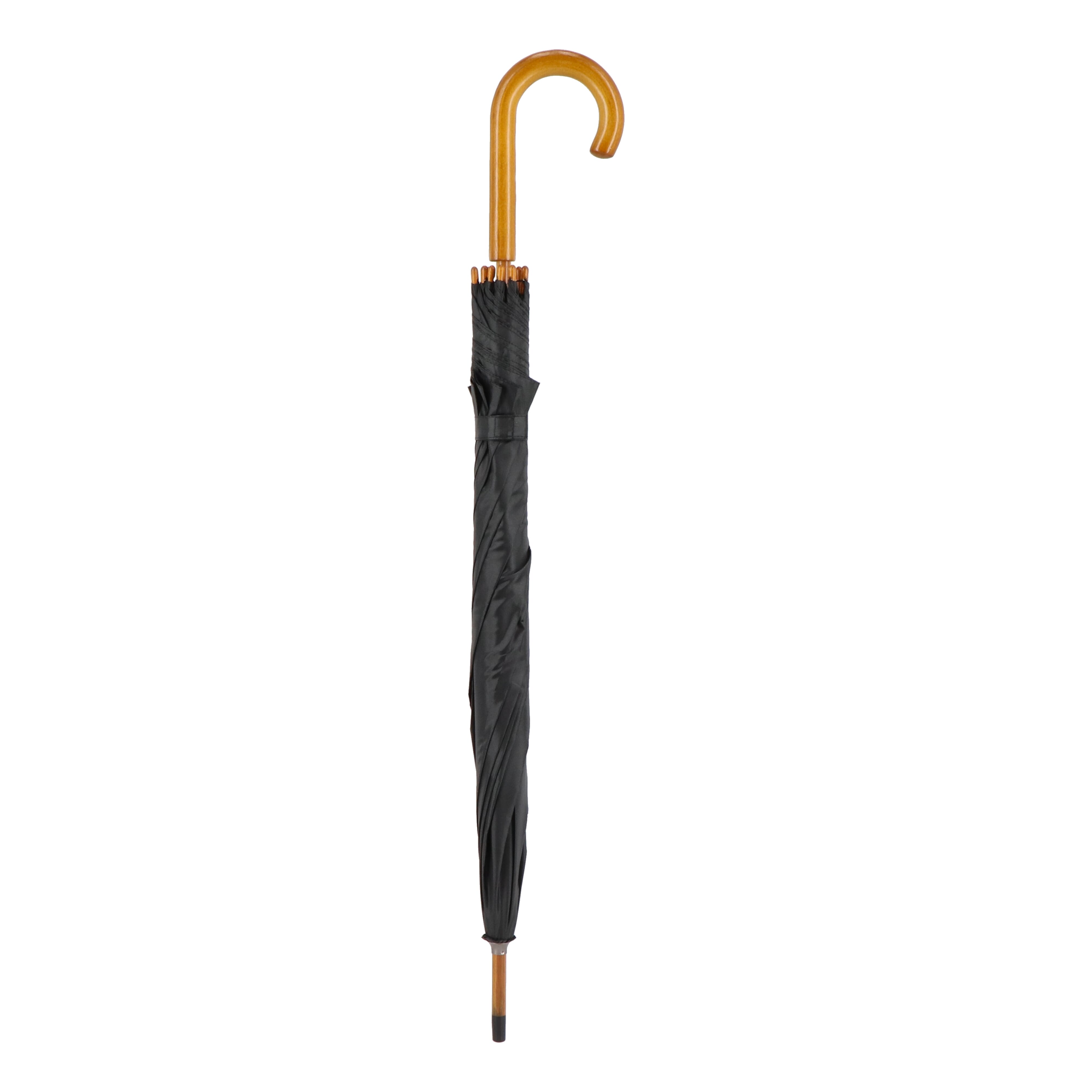 Dieser 23-Zoll-Stockschirm verfügt über einen hölzernen Hakengriff und einen robusten Holzschaft mit einem Glasfasergestell, das für starken Regen ausgelegt ist. Er verfügt über eine automatische Öffnungs- und manuelle Schließfunktion und hat eine strapazierfähige Kappe aus 190T-Polyester, die eine zuverlässige Leistung gewährleistet.