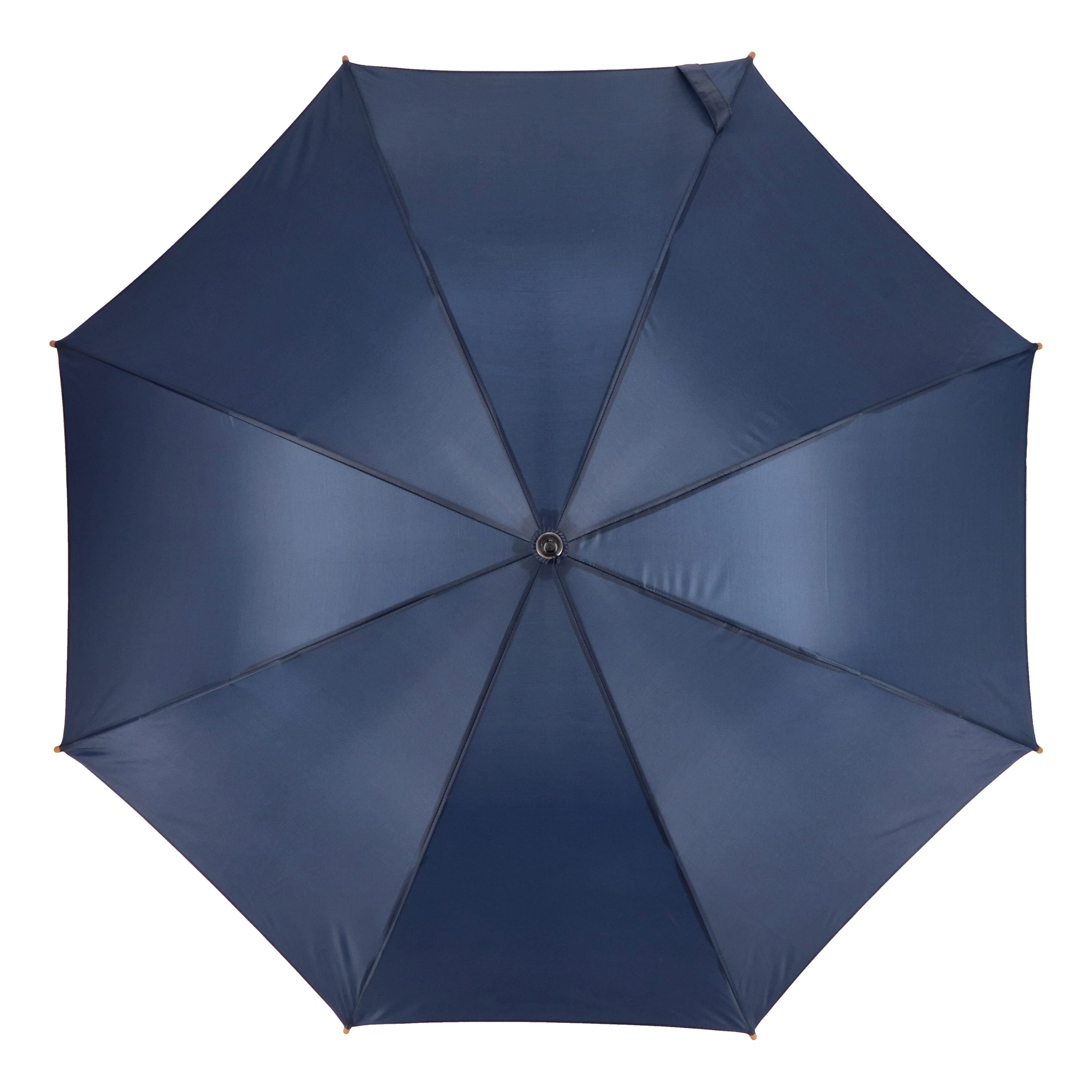 Dieser 23-Zoll-Stockschirm verfügt über einen hölzernen Hakengriff und einen robusten Holzschaft mit einem Glasfasergestell, das für starken Regen ausgelegt ist. Er verfügt über eine automatische Öffnungs- und manuelle Schließfunktion und hat eine strapazierfähige Kappe aus 190T-Polyester, die eine zuverlässige Leistung gewährleistet.