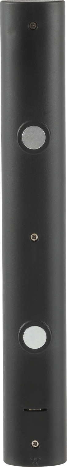 Arbeitslampe aus ABS-Kunststoff mit drei LED Lichtern und zwei Magneten auf der Rückseite. Licht-Einstellungen: blinkend und konstant.