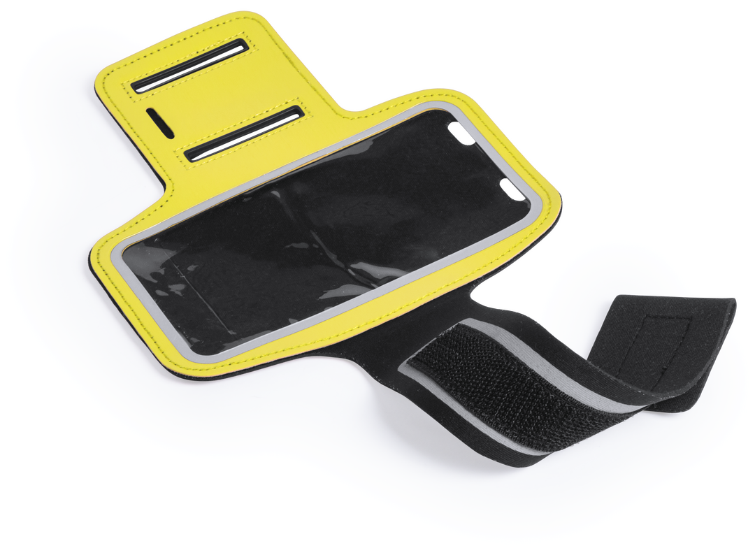 Taktiles Sportarmband, konzipiert für Geräte mit bis zu 6 Zoll Bildschirm. Reflektierende Vorderseite, mit verstellbarem, elastischem Verschlussband und Schlüsseltasche. Erhältlich in einer Reihe von Farben.
