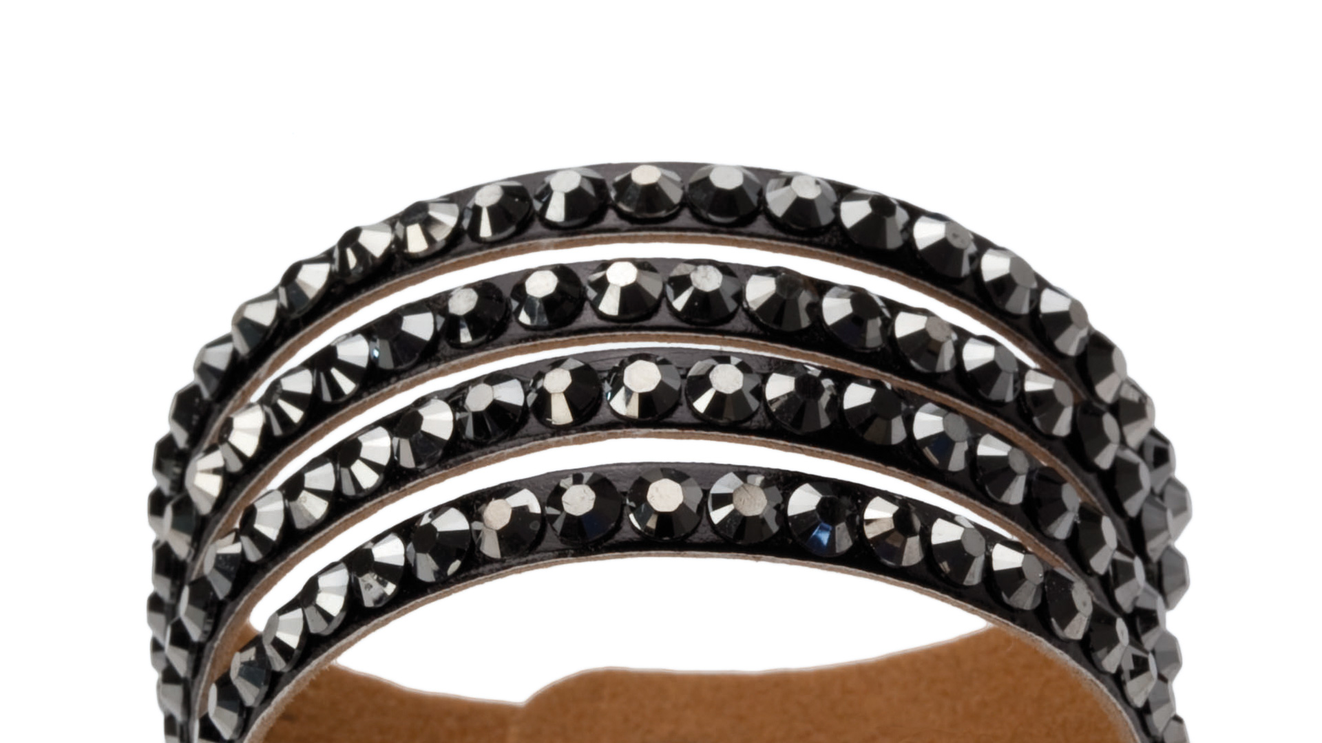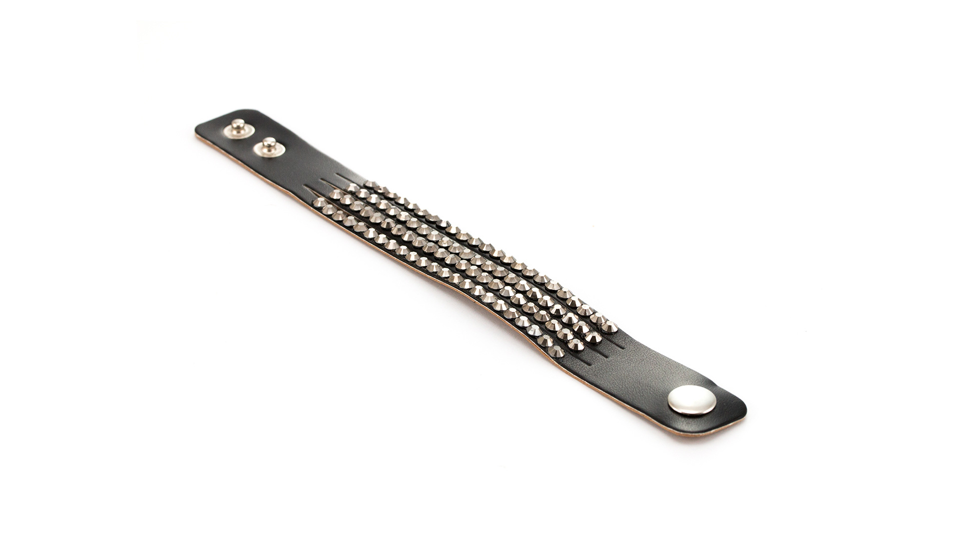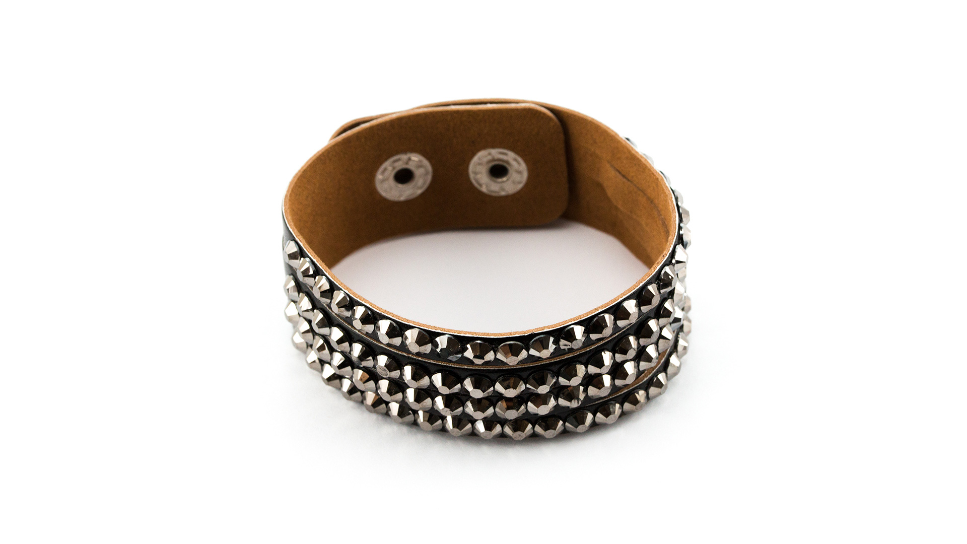 Elegantes Kunstlederarmband mit glänzenden Steinen in lebendigen Farben. Mit verstellbarem Druckknopfverschluss.