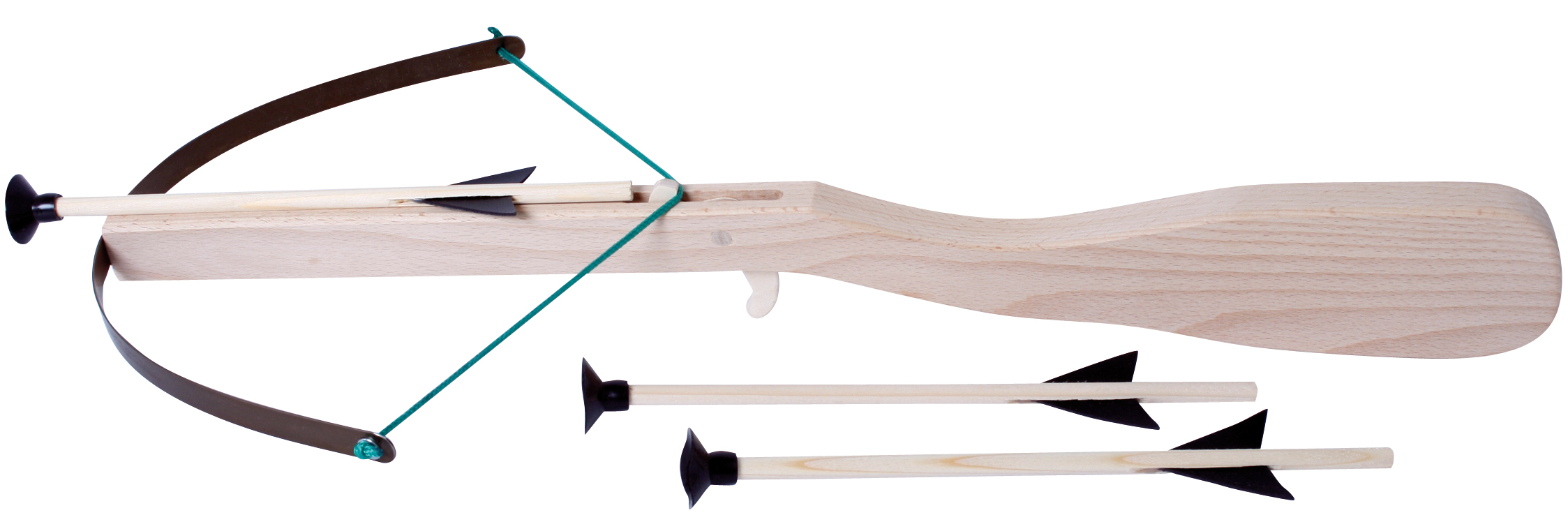 Sportgerät mit Metall-Spannbügel und drei Pfeilen mit Saugnapf-Spitze. Die Armbrust darf nur mit den beiliegenden Pfeilen verwendet werden! Ab 18 Jahren.