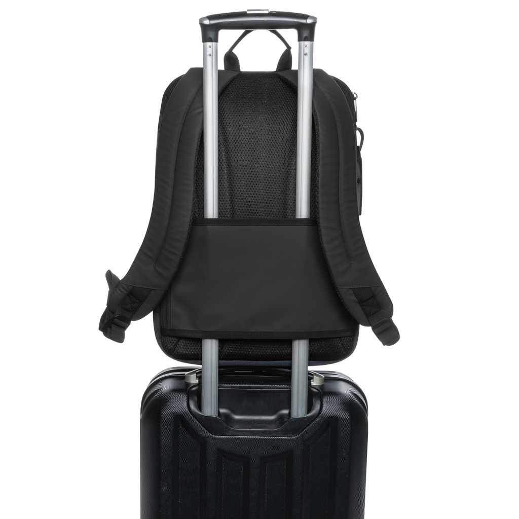 Das schlichte Design macht den Rucksack äußerst vielseitig und ideal für Arbeit und Freizeit. Er ist schick genug für den Sitzungssaal, bietet aber dennoch die Bequemlichkeit und den Komfort eines Rucksacks. Schützen Sie Ihren 15,6"-Laptop mit dem separaten, gepolsterten Rückenfach. In der bequemen, leicht zugänglichen Deckeltasche können Sie bei der Sicherheitskontrolle oder beim Zoll Ihre wichtigsten Gegenstände wie Reisepass, Ticket oder Smartphone verstauen. Die Netztaschen im Inneren sorgen für Ordnung bei Ihren kleineren Utensilien. An der Seite befindet sich ein Gepäckanhänger. Hergestellt aus recyceltem Polyester, das mit dem AWARE™-Tracer versehen ist. 2% des Erlöses aus jedem verkauften Produkt mit AWARE™ werden an Water. org gespendet. PVC-frei.