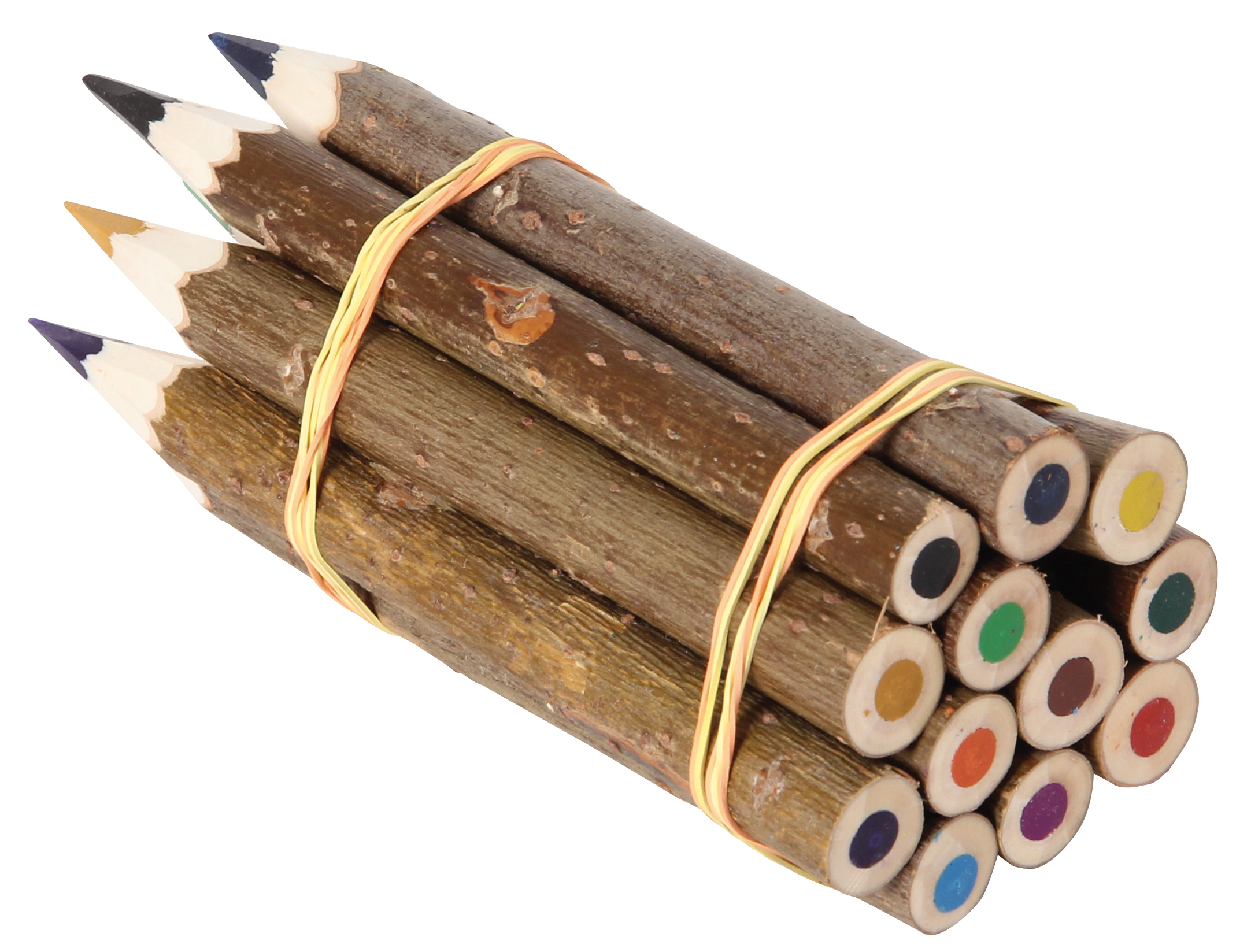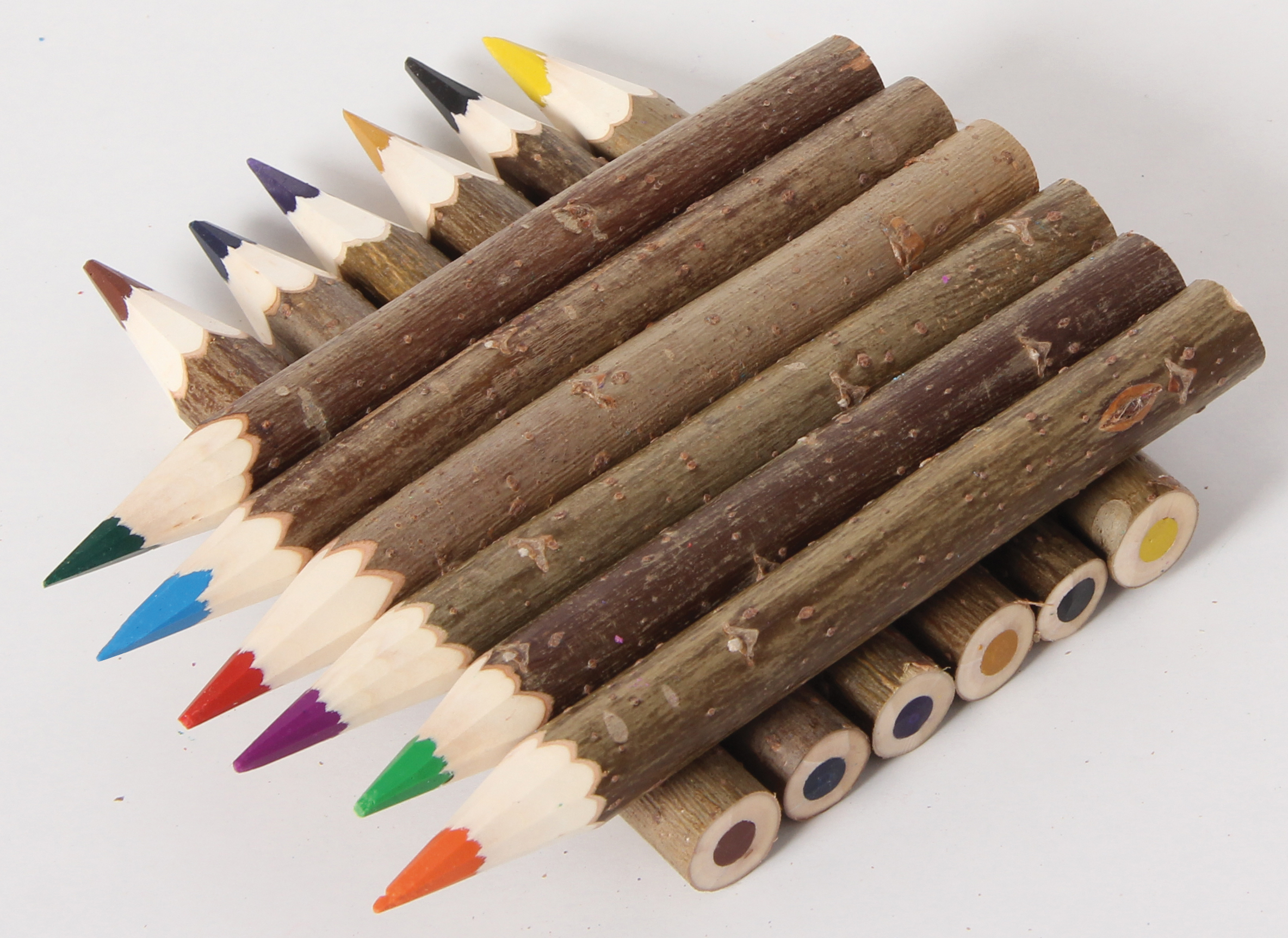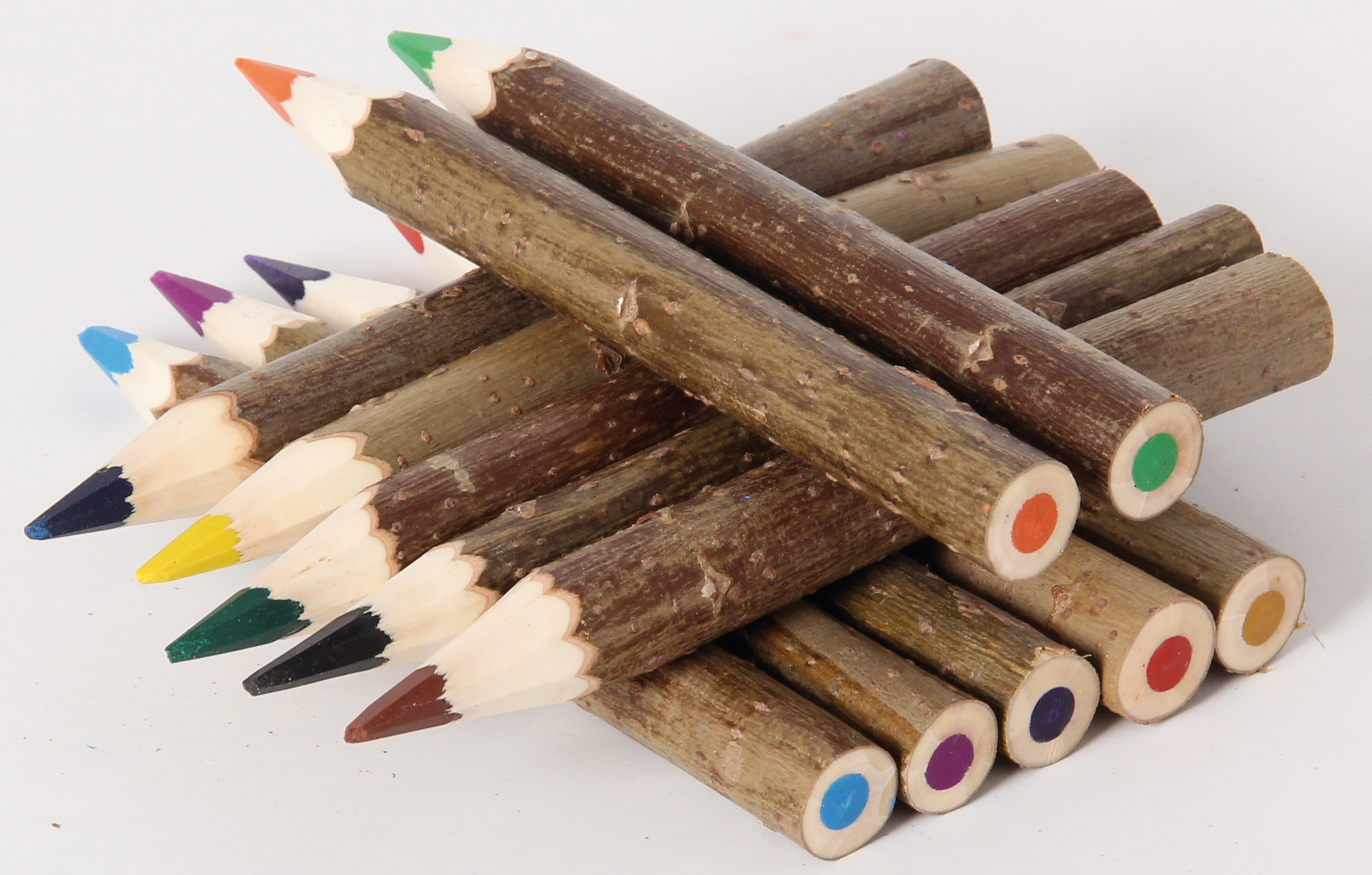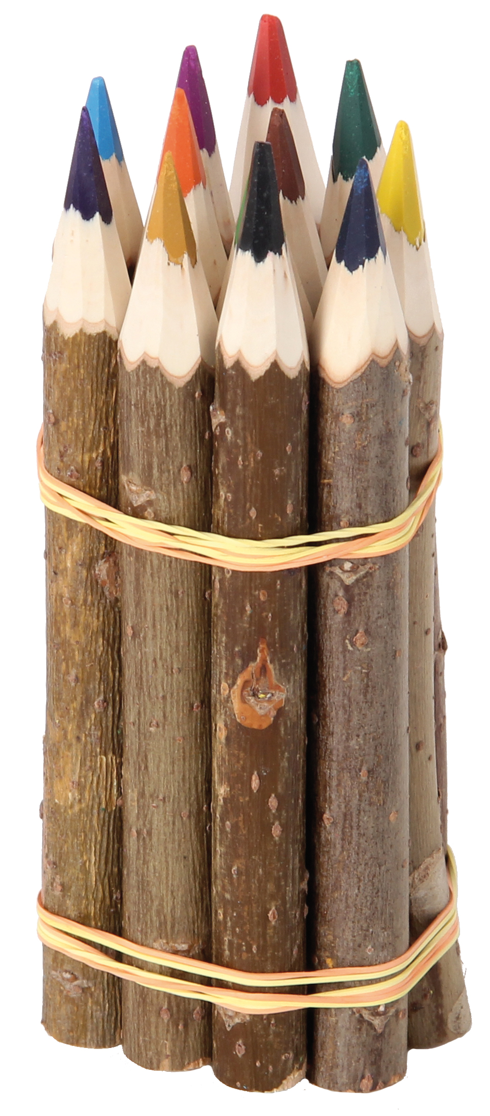 Rustikale Stifte in originellem Design. Das Set besteht aus 12 verschiedenen Farbstiften mit ca. 17 cm Länge. Da es sich um ein Naturprodukt handelt, kann es zu Abweichungen in Abmessung und Farbe kommen.