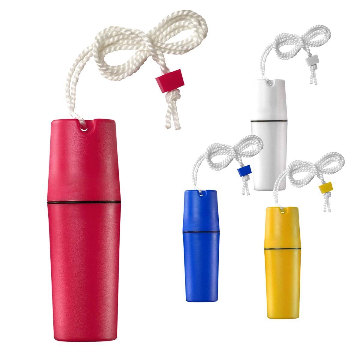 Wasserdichte Badebox mit Schraubverschluss, Dichtungsring und Umhängekordel. Damit müssen Sie Ihre Wertsachen nie wieder aus den Augen lassen.