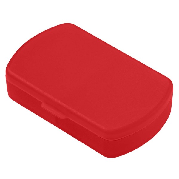 Handliche Aufbewahrungsdose aus lebensmittelechtem Kunststoff mit 2 abgetrennten Fächern und Klickverschluss. Durch die glatte Oberfläche ist eine optimale Ausnutzung der Werbefläche möglich.