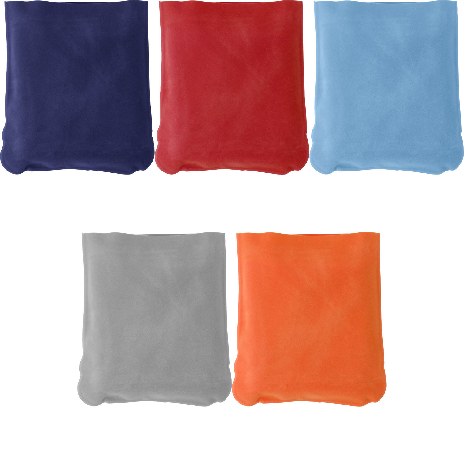 Aufblasbare Nackenstütze inklusive Hülle aus PVC, Lieferung in gefaltetem Zustand.