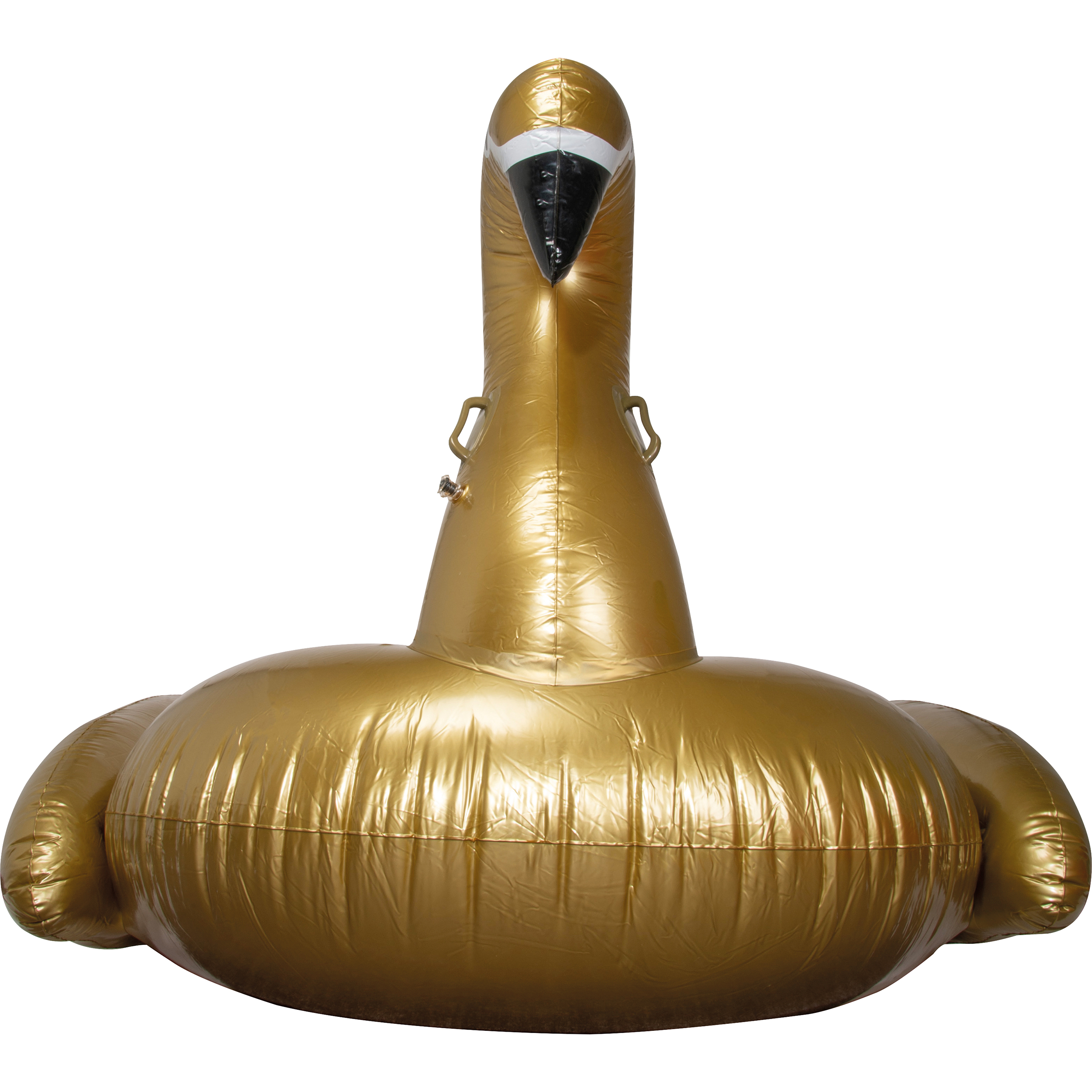 Aufblasbares Schwimmtier in Form eines goldenen Schwans mit 2 Haltegriffen. Ihre Werbung drucken wir auf die Sitzfläche.