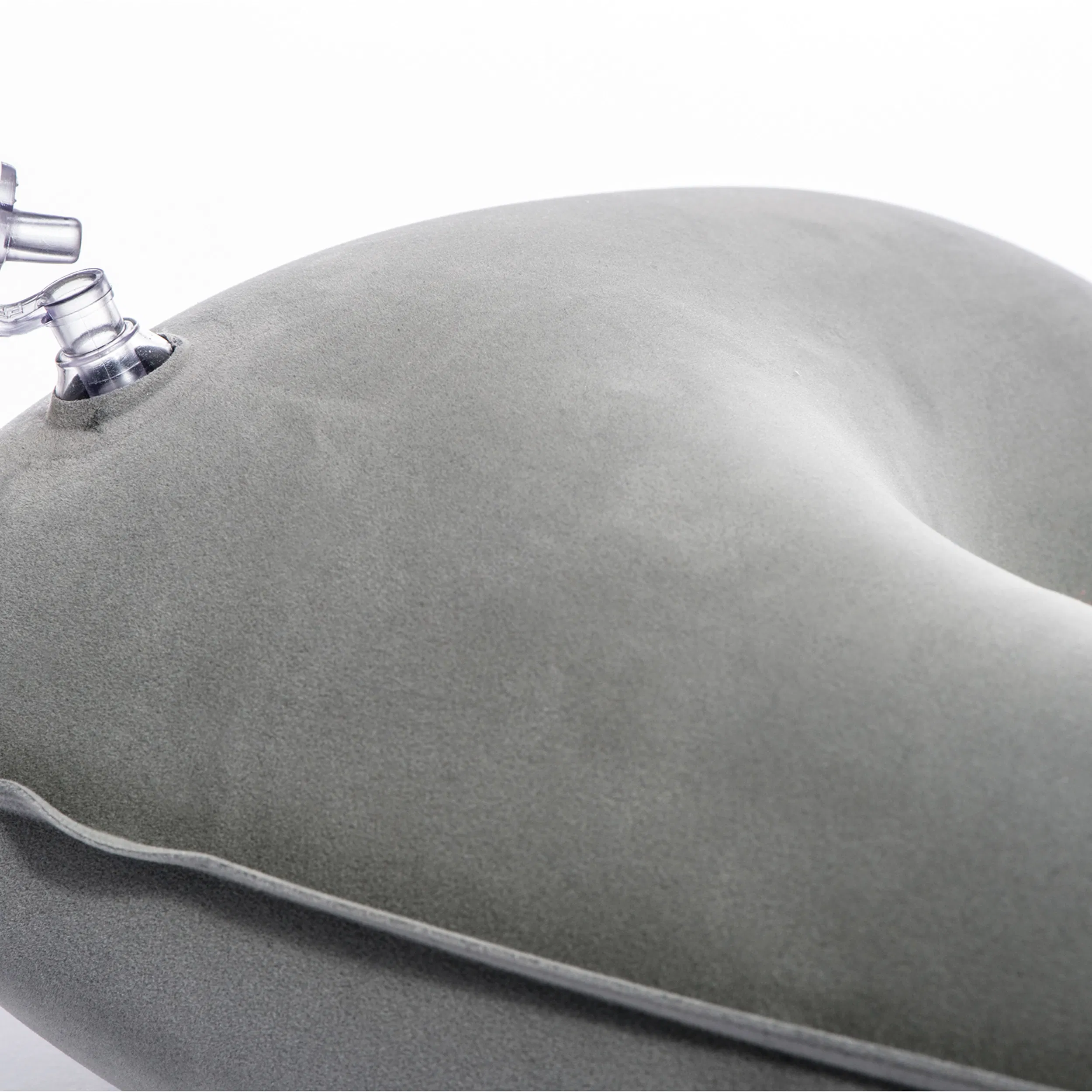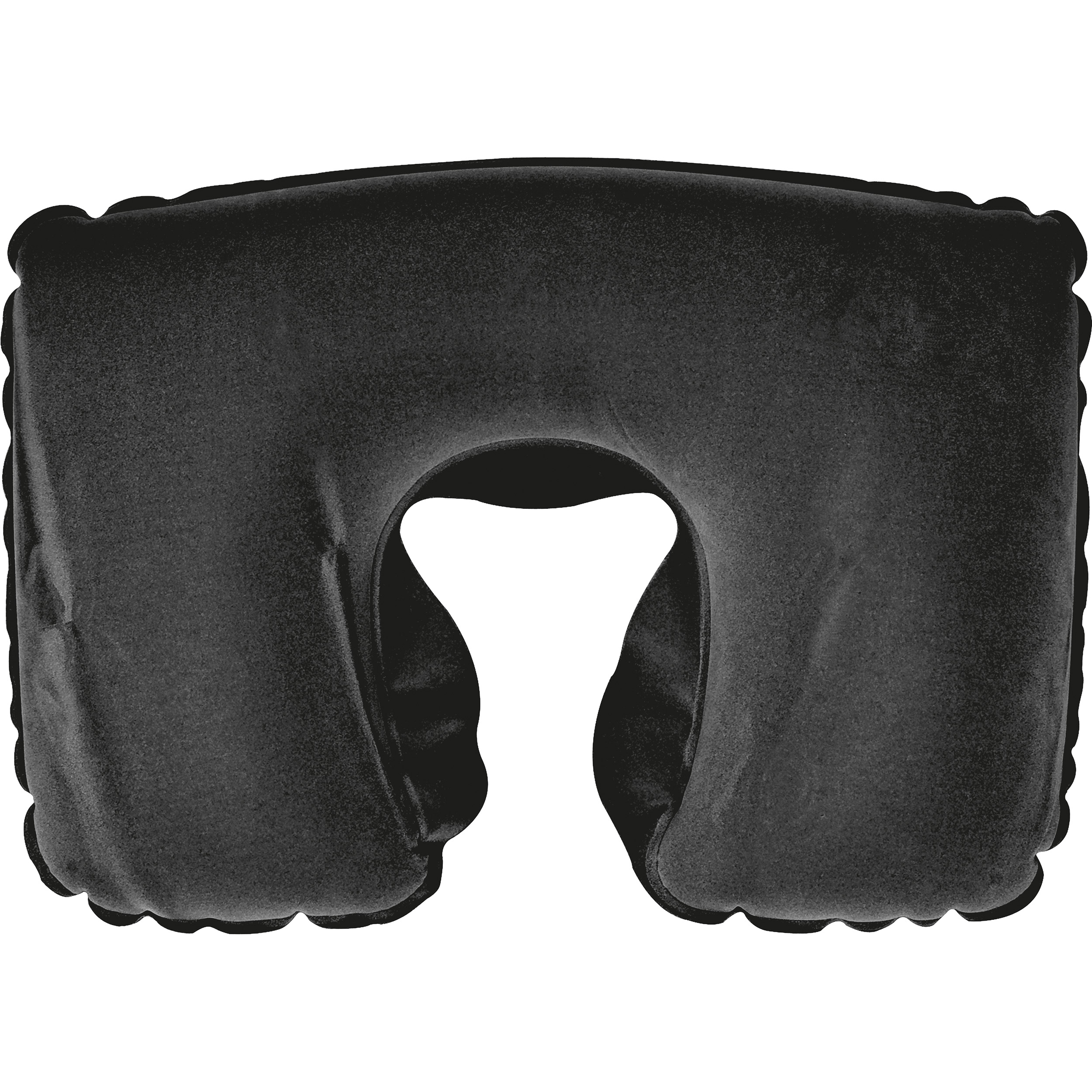 Aufblasbares Nackenkissen aus angenehm samtigem Material zur Entspannung auf langen Reisen in Auto, Bahn oder Flugzeug. Ihre Werbung drucken wir auf das Etui.