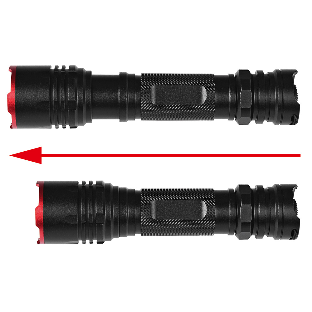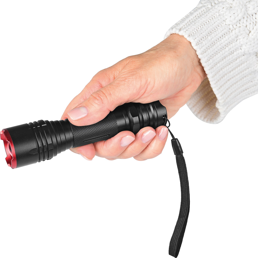 Aufladbare 15W LED Taschenleuchte mit Fokussierung und Signallichtfunktion. Eine effiziente und nachhaltige Lichtquelle, die durch eine leistungsstarke 1200 Lumen LED mit geringem Energieverbrauch und 250 Meter Leuchtweite besticht. Die LED lässt sich für einen vielseitigen Einsatz in 5 verschiedene Leuchtmodi schalten. Der aufladbare Akku ersetzt eine große Menge Einwegbatterien und macht diese absolut hochwertige Leuchte zu einer nachhaltigen, umweltfreundlichen Alternative zu batteriebetriebenen Leuchten. Das passende Ladekabel sowie der Akku sind im Lieferumfang enthalten. Gehäuse: Aluminium eloxiert. Leuchtmittel: 15W SMD LED. Lichtwerte: 1200 Lumen, 250 Meter Leuchtweite (100% Power). Ladezeit: ca. 4-5 Stunden. Leuchtmodi: 100% Power weißes Licht / 50% Power weißes Licht / 30% Power weißes Licht / Strobe weißes Licht / S. O.S. weißes Licht. Equipment: fokussierbar durch Herausziehen des Leuchtenkopfes, Ladestandanzeige, Handschlaufe, USB Typ A / Micro-USB Typ B Ladekabel (100 cm Länge). Schutzklasse: IP44. Stromversorgung: 3,7V 2200mAh Li-Ionen Akku Typ 18650 (inkl.). Verpackung: schwarze Geschenkverpackung.