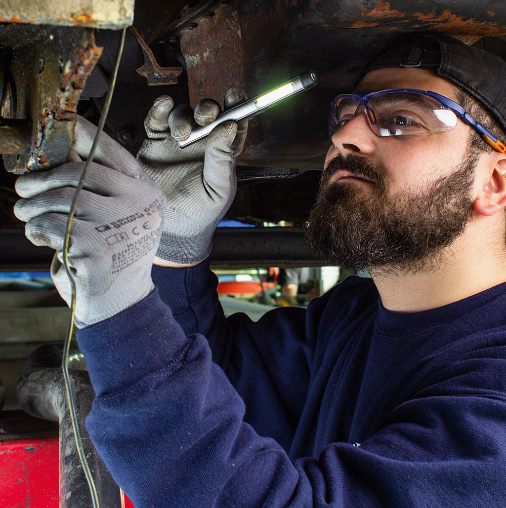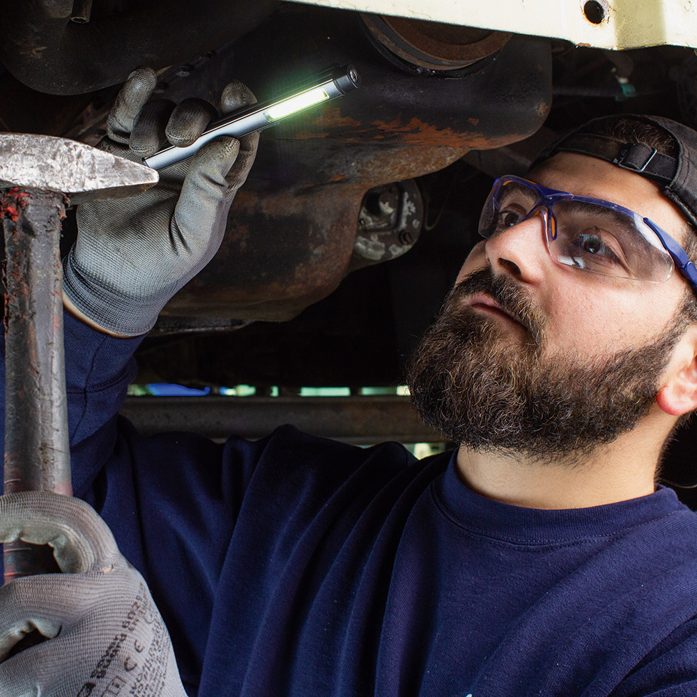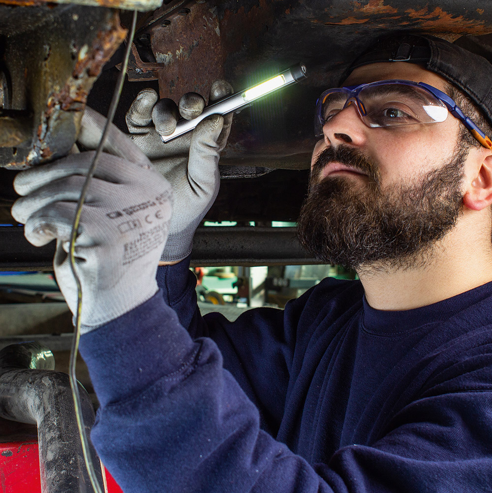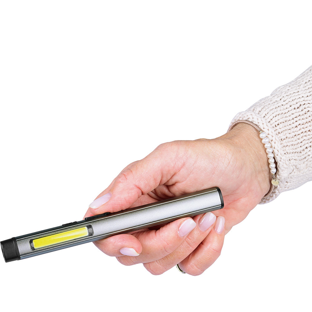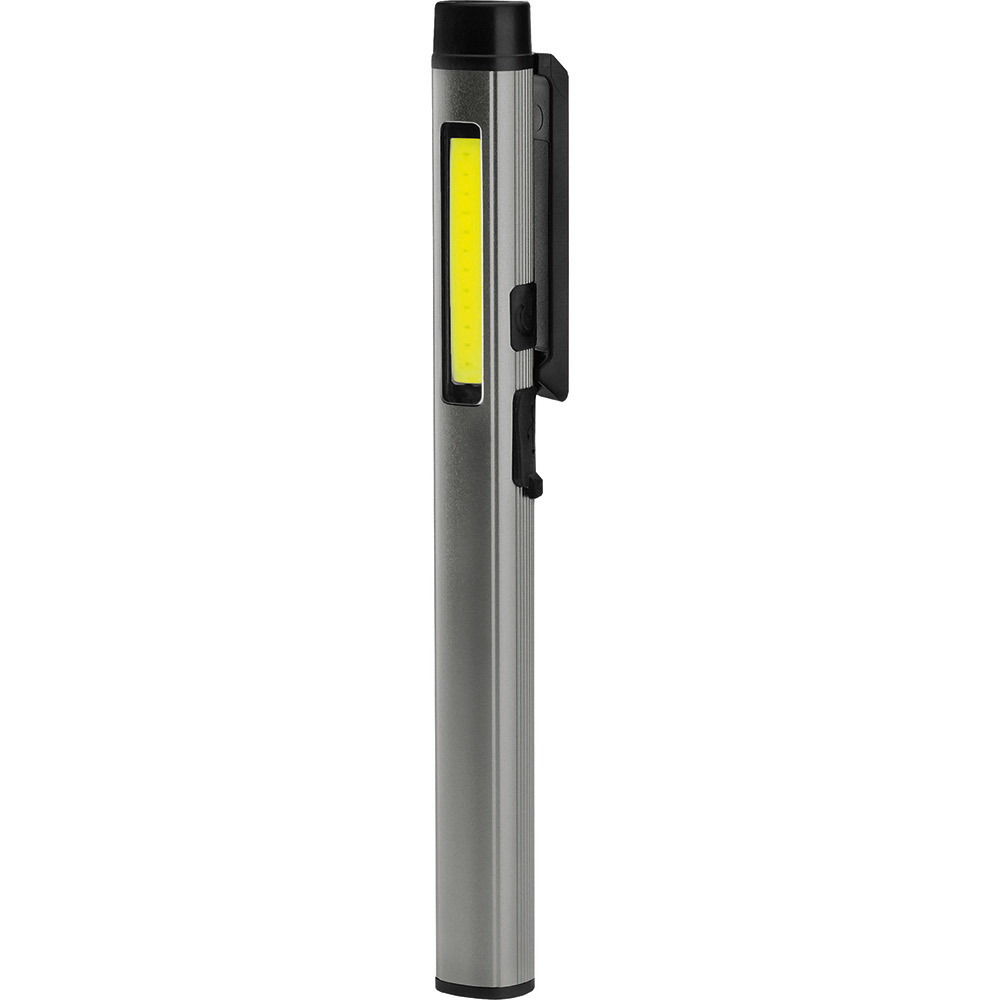Aufladbare LED-Inspektionsleuchte mit UV-Licht. Gehäuse: Aluminium eloxiert. Leuchtmittel: Arbeitsleuchte 3 W COB LED, Inspektionsleuchte 1 W LED, UV-Licht 365 nm. Lichtwerte: Arbeitsleuchte 200 Lumen, Inspektionsleuchte 100 Lumen. Ladezeit: ca. 2-3 Stunden. Leuchtdauer: ca. 3-4 Stunden. Leuchtmodi: Arbeitsleuchte 100 % Power weißes Licht / 50 % Power weißes Licht, Inspektionsleuchte 100 % Power weißes Licht, UV-Licht. Equipment: 120° drehbarer Clip mit starkem Magnet, Ladekontroll-LED, USB (Typ A) / USB Typ-C Ladekabel (100 cm Länge). Schutzklasse: IP44. Stromversorgung: 3,7V 800mAh Li-Ionen Akku Typ 14500 (inkl.). Verpackung: schwarze Geschenkverpackung.