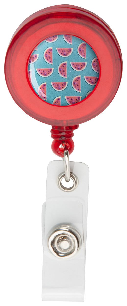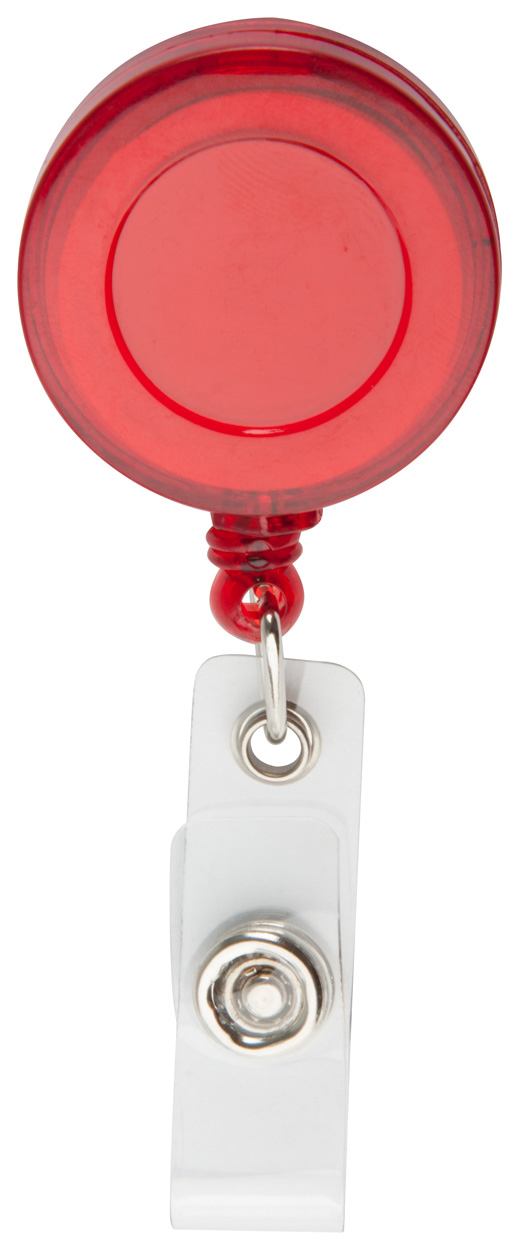 Ausweishalter mit Zugschnur und Druckknopf, aus transparentem Kunststoff.