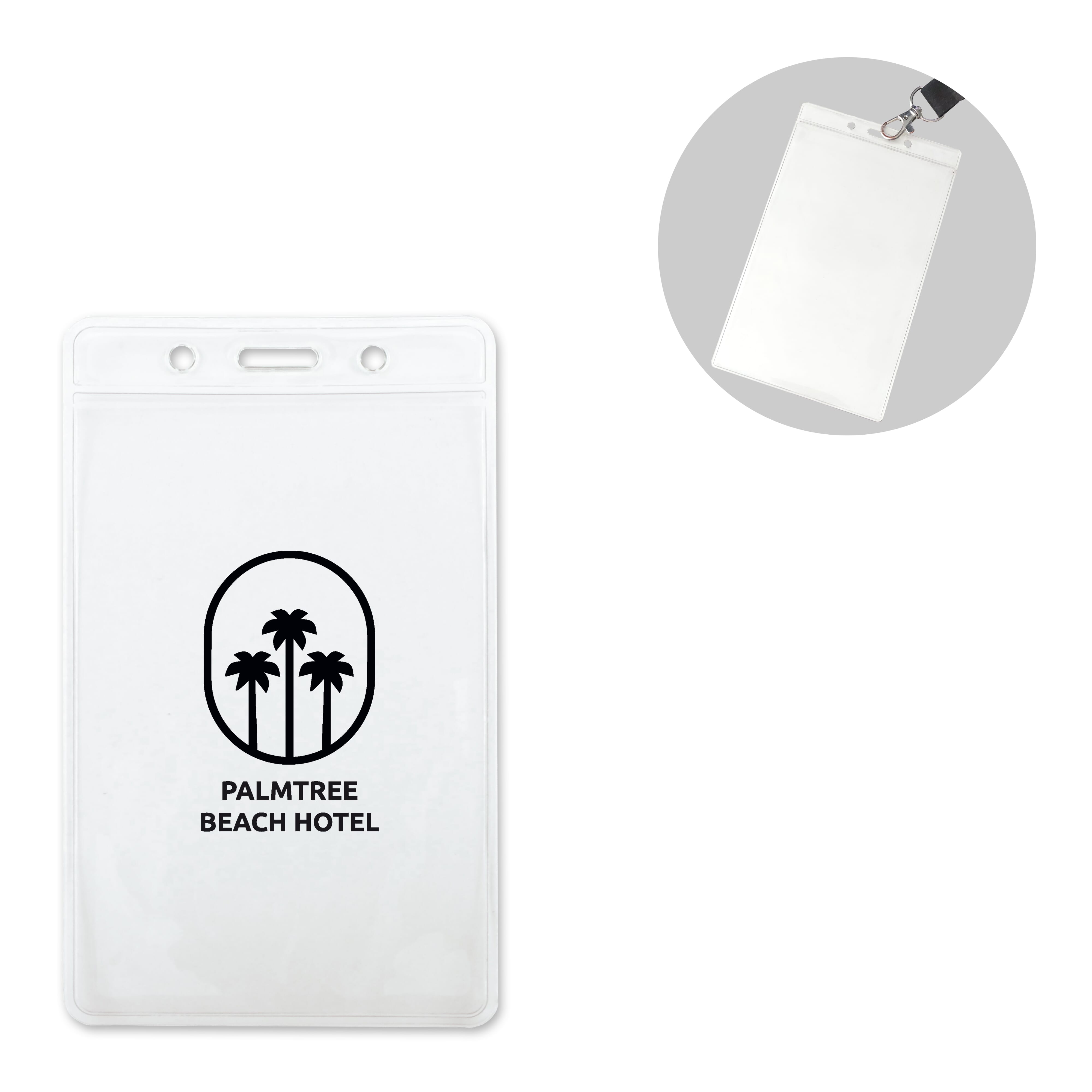 Transparenter Ausweishalter. Einfach an einem Lanyard oder Schlüsselanhänger zu befestigen. Ideal für Kongresse, Festivals und Kundentage.