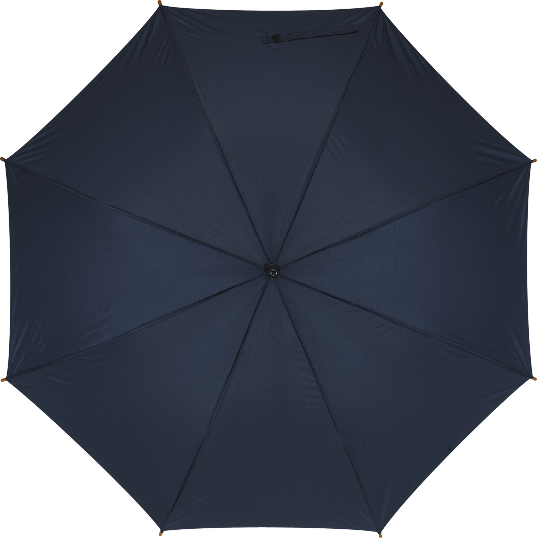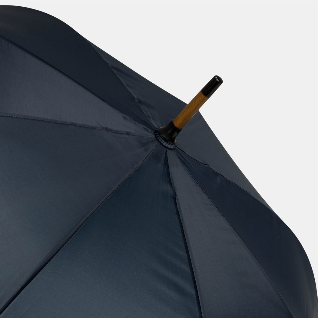 Automatik-Holzstockschirm TANGO: Metallspeichen, Holztips und -Rundhakengriff, Polyester-Bespannung, Schließband mit Klettverschluss