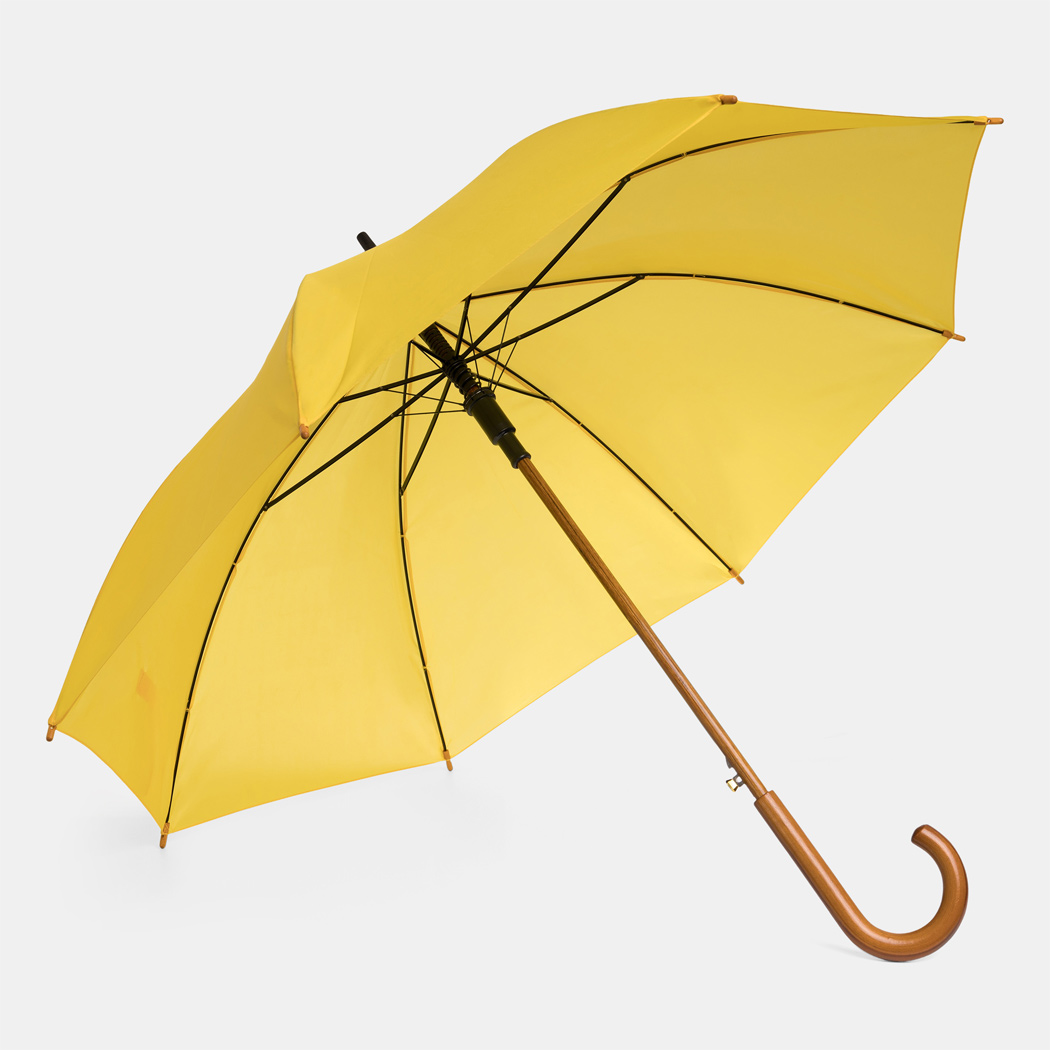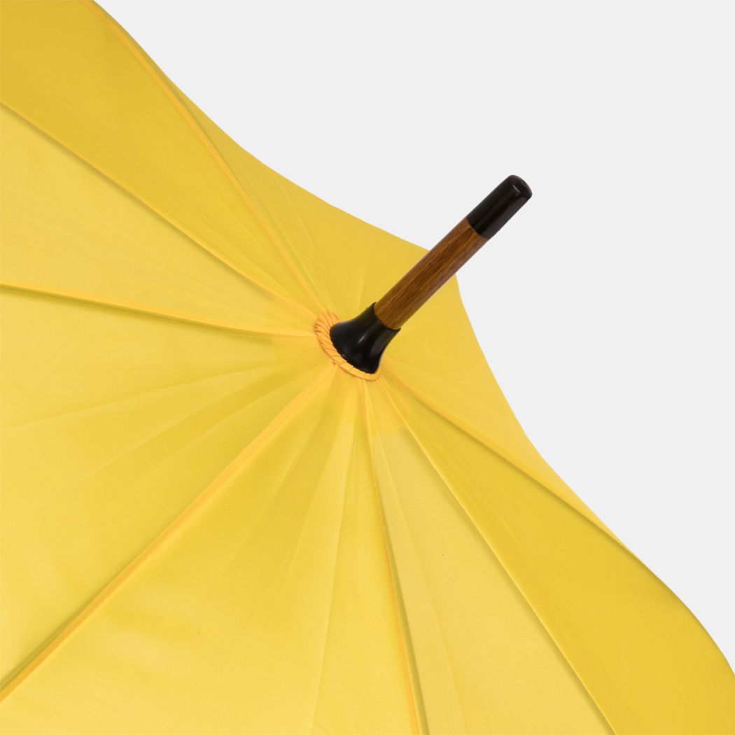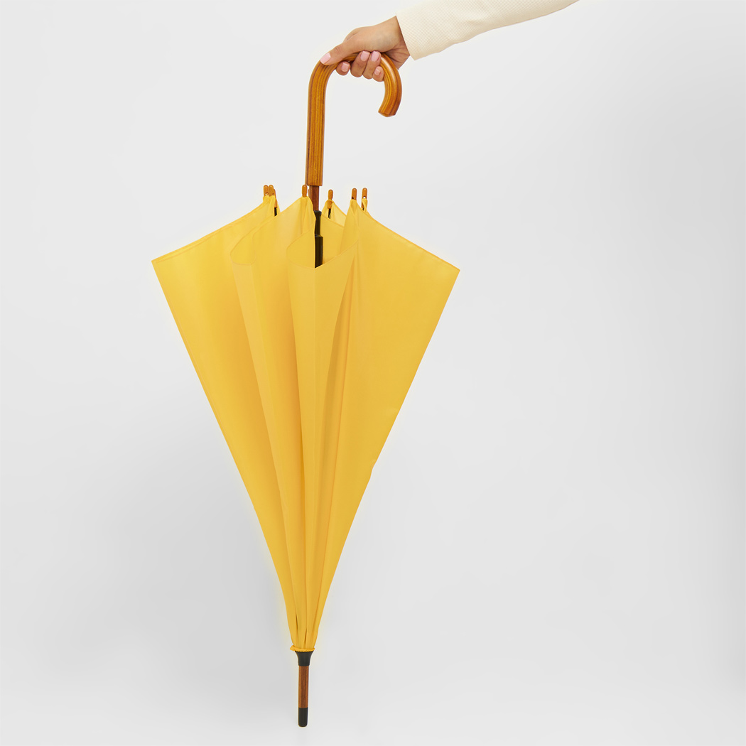 Automatik-Holzstockschirm TANGO: Metallspeichen, Holztips und -Rundhakengriff, Polyester-Bespannung, Schließband mit Klettverschluss