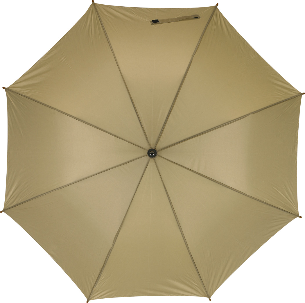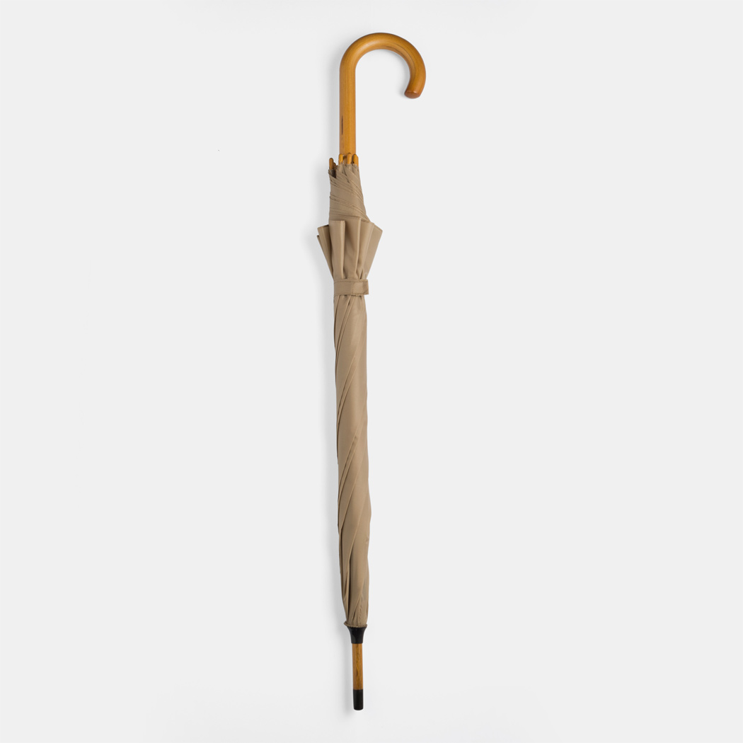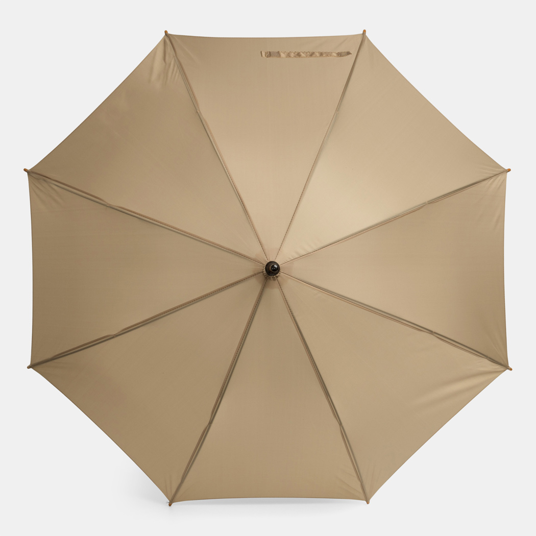 Automatik-Holzstockschirm TANGO: Metallspeichen, Holztips und -Rundhakengriff, Polyester-Bespannung, Schließband mit Klettverschluss