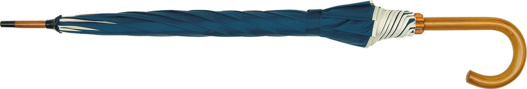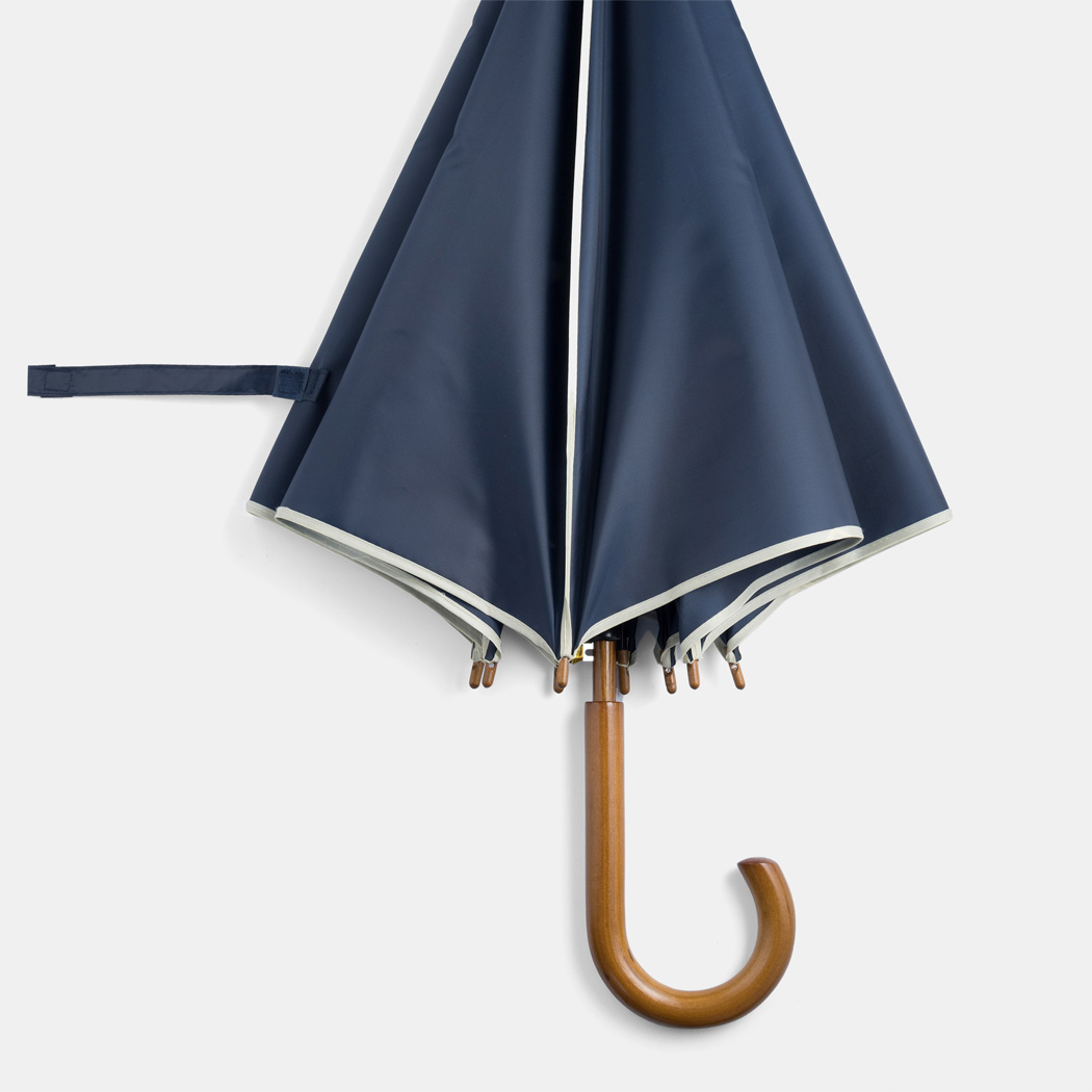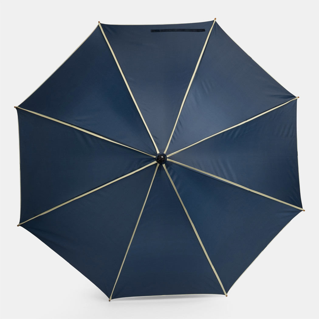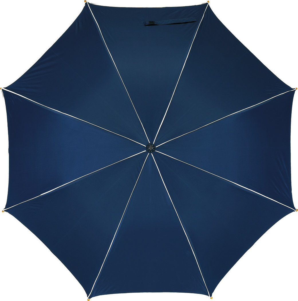 Automatik-Holzstockschirm WALTZ mit farbiger Paspelierung: Metallspeichen, Holztips und -Rundhakengriff, Polyester-Bespannung, Schließband mit Klettverschluss