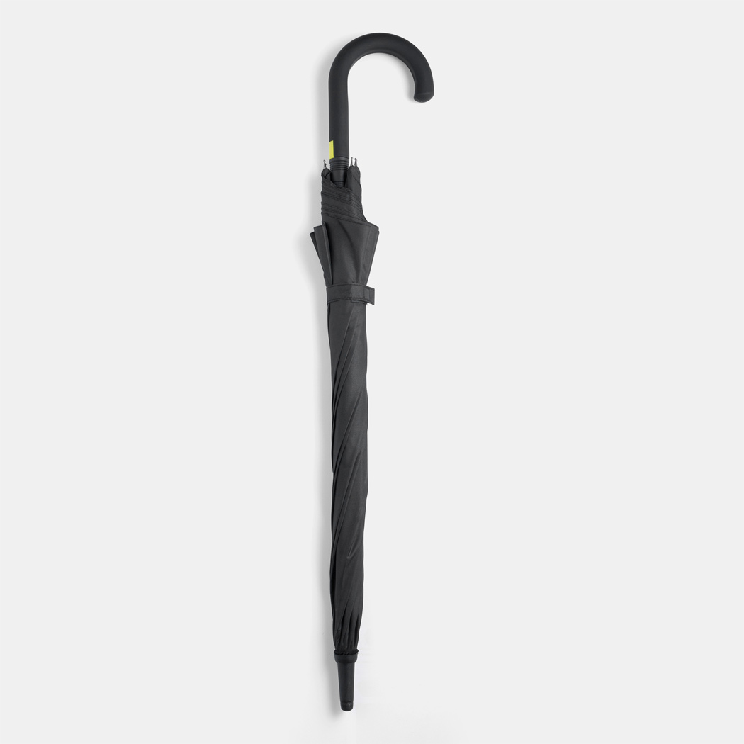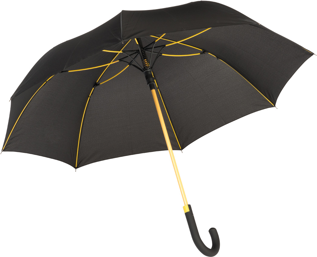 Automatik-Stockschirm CANCAN: Metallstock und Fiberglasspeichen farblich abgestimmt, mit Metalltips, gummierter Rundhakengriff mit farblich abgestimmter Automatik-Auslösetaste, Polyester-Pongee-Bespannung, Schließband mit Klettverschluss