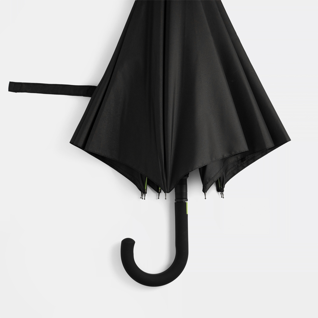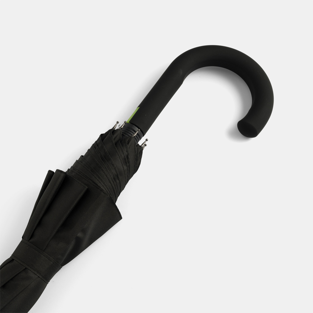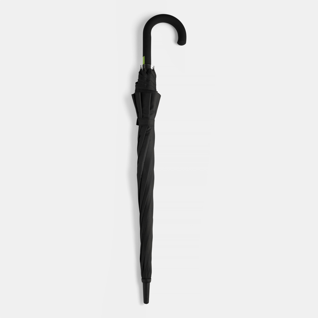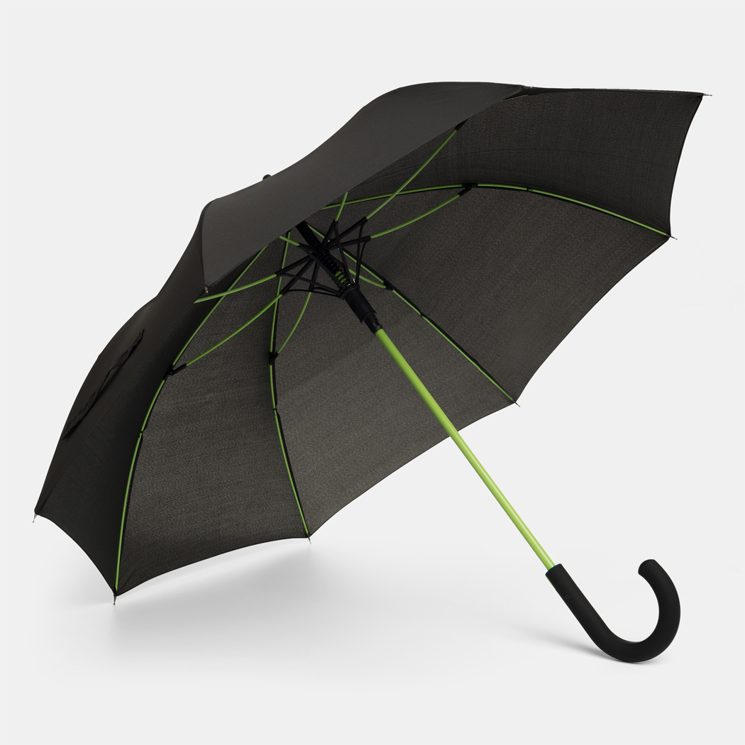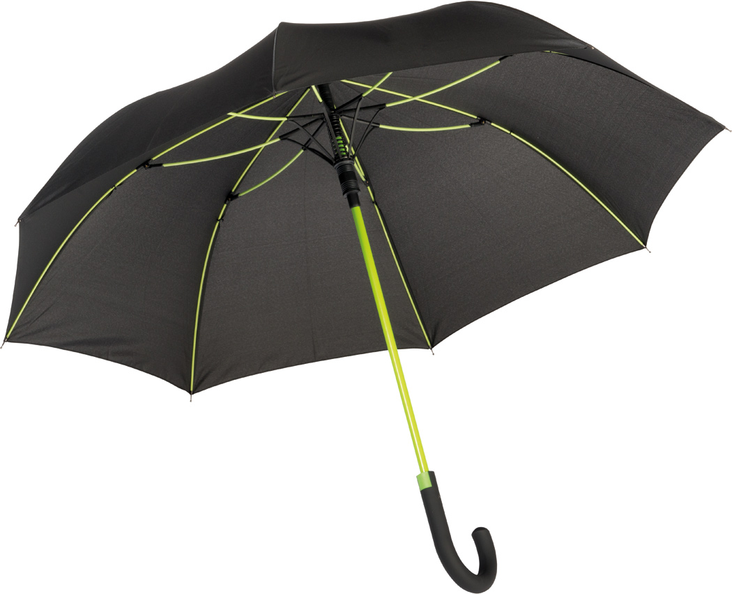 Automatik-Stockschirm CANCAN: Metallstock und Fiberglasspeichen farblich abgestimmt, mit Metalltips, gummierter Rundhakengriff mit farblich abgestimmter Automatik-Auslösetaste, Polyester-Pongee-Bespannung, Schließband mit Klettverschluss