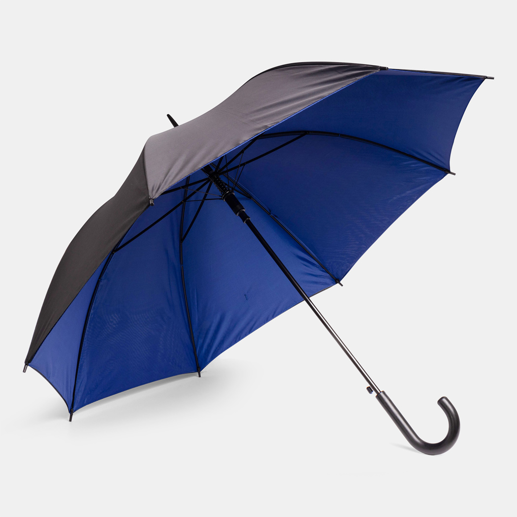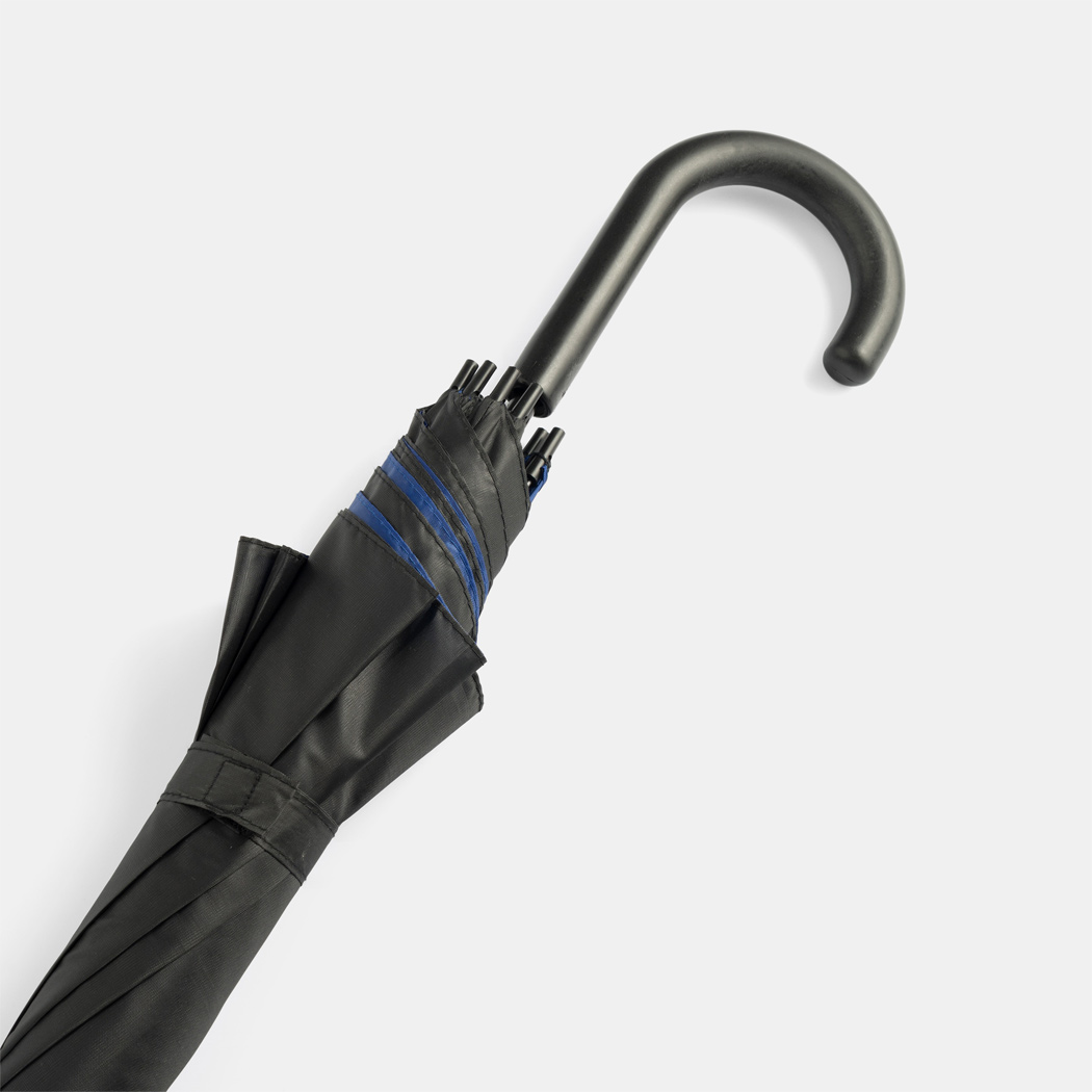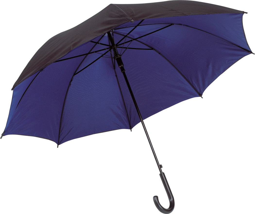 Automatik-Stockschirm DOUBLY: Metallstock und -speichen, Kunststofftips und -Rundhakengriff, doppelt bespanntes und zweifarbiges Schirmdach, Polyester-Bespannung, Schließband mit Klettverschluss