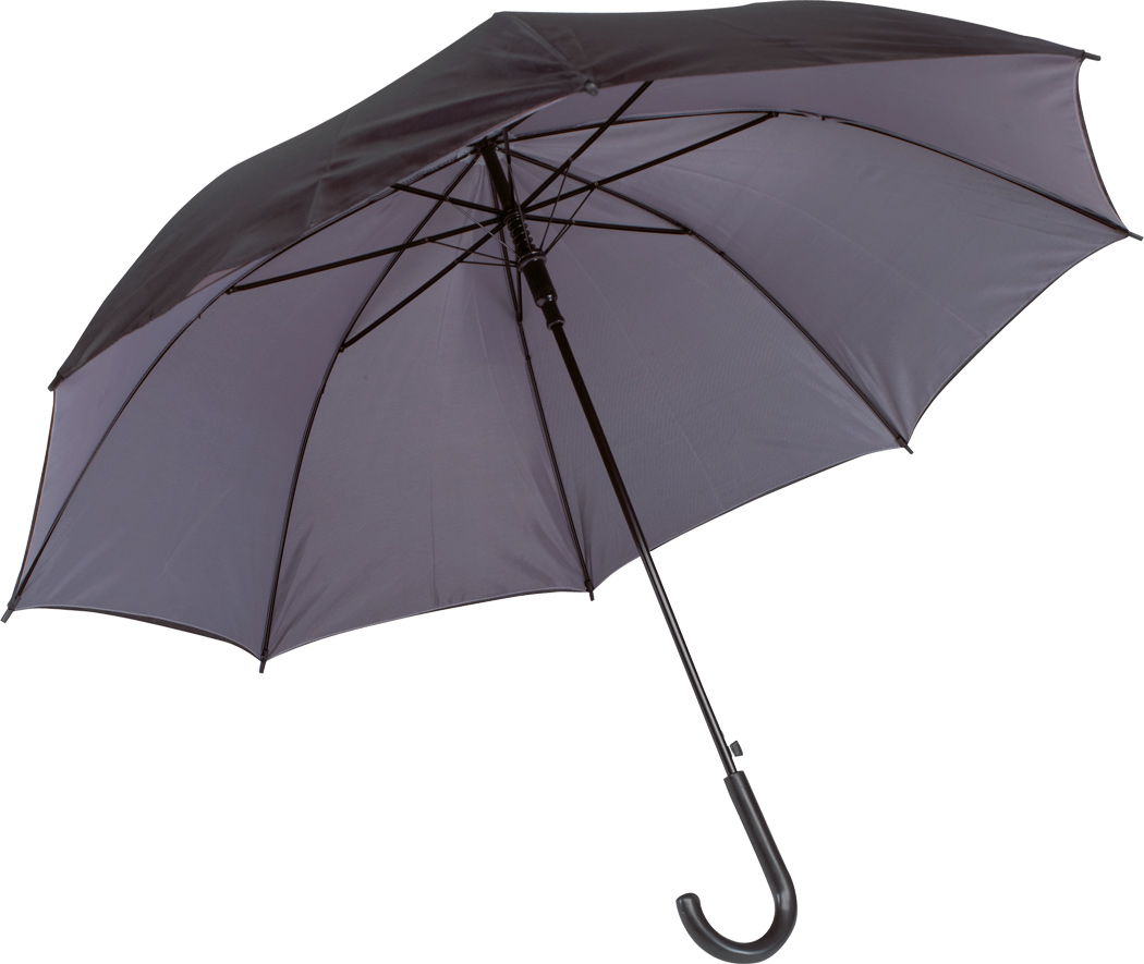 Automatik-Stockschirm DOUBLY: Metallstock und -speichen, Kunststofftips und -Rundhakengriff, doppelt bespanntes und zweifarbiges Schirmdach, Polyester-Bespannung, Schließband mit Klettverschluss