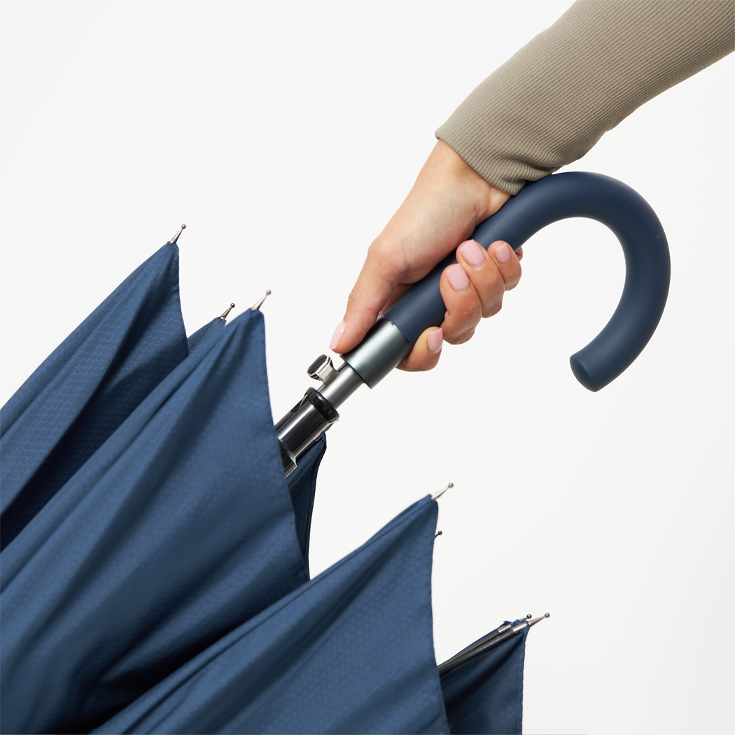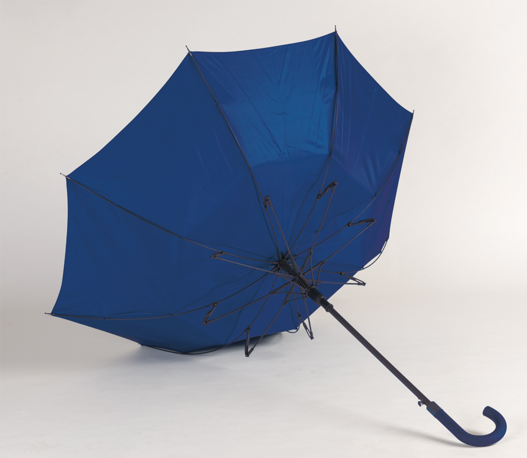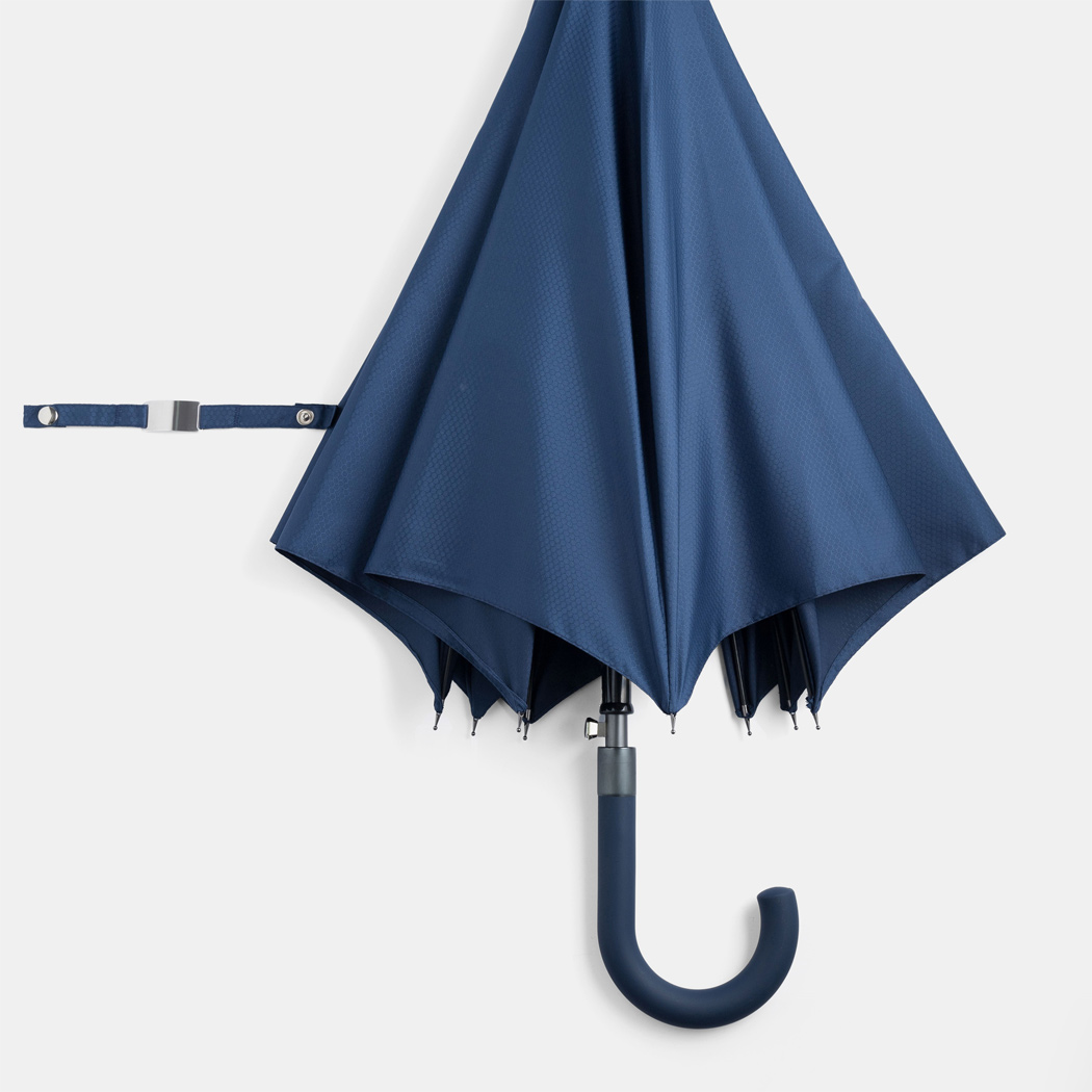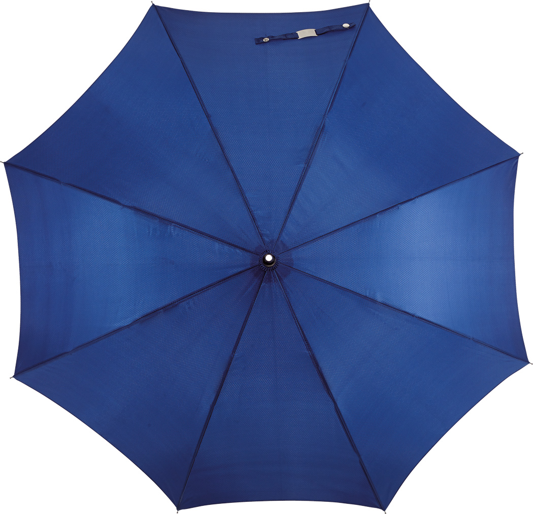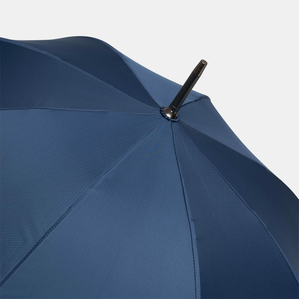 Automatischer Windproof-Stockschirm JUBILEE: Aluminiumstock, Fiberglasspeichen, Metalltips, gummierter und farblich abgestimmter Rundhakengriff, Polyester-Bespannung und -Hülle mit Wabenstruktur, Verschlussband mit Druckknopf und Metall-Platte zur Werbeanbringung