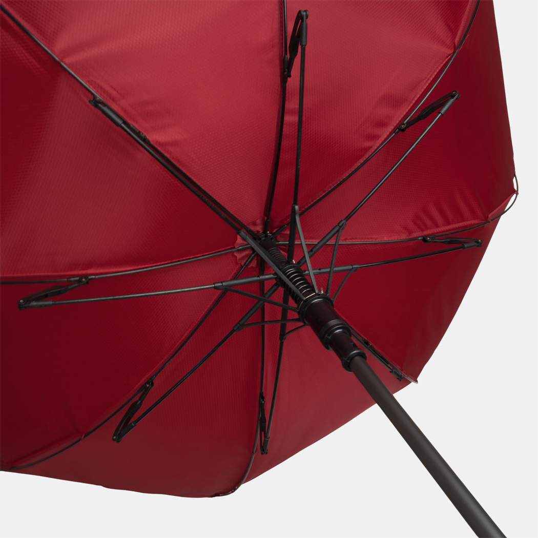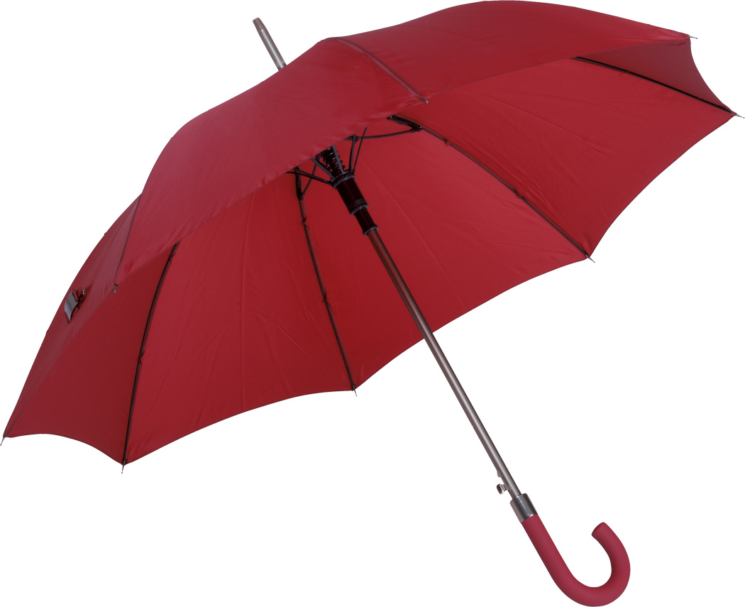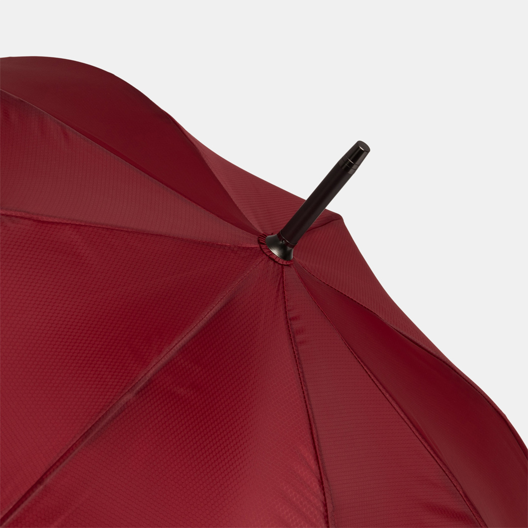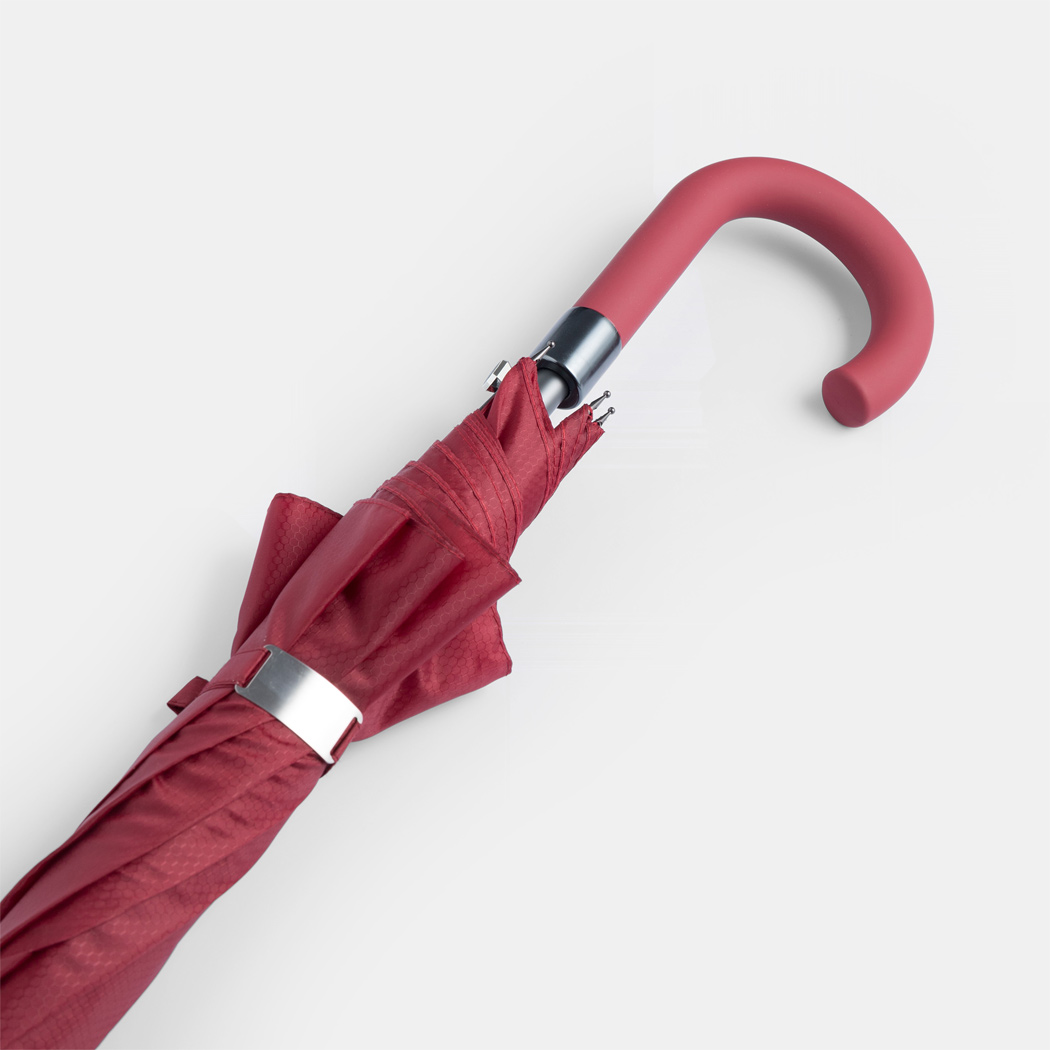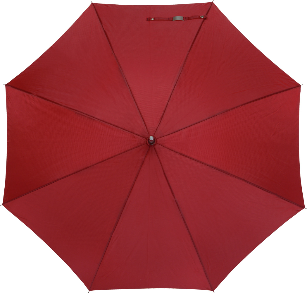Automatischer Windproof-Stockschirm JUBILEE: Aluminiumstock, Fiberglasspeichen, Metalltips, gummierter und farblich abgestimmter Rundhakengriff, Polyester-Bespannung und -Hülle mit Wabenstruktur, Verschlussband mit Druckknopf und Metall-Platte zur Werbeanbringung