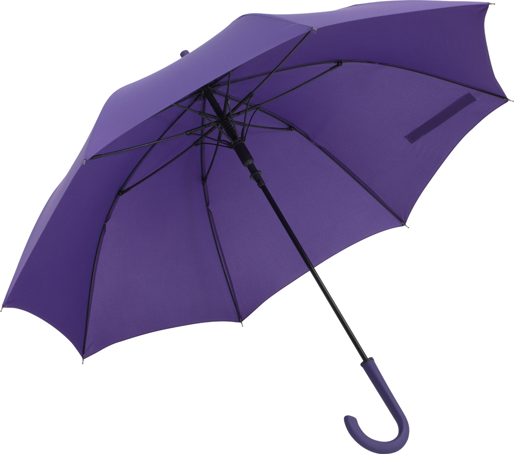Automatik-Stockschirm LAMBARDA: Metallstock, Fiberglasspeichen, Metalltips, gummierter Rundhakengriff mit integrierter Auslösetaste, Polyester-Pongee-Bespannung mit stark wasserabweisender Spezialbeschichtung, Schließband mit Klettverschluss