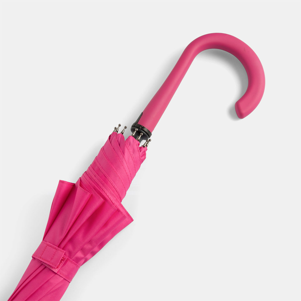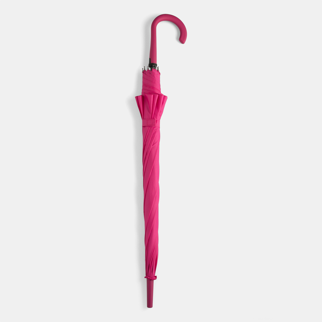 Automatik-Stockschirm LAMBARDA: Metallstock, Fiberglasspeichen, Metalltips, gummierter Rundhakengriff mit integrierter Auslösetaste, Polyester-Pongee-Bespannung mit stark wasserabweisender Spezialbeschichtung, Schließband mit Klettverschluss