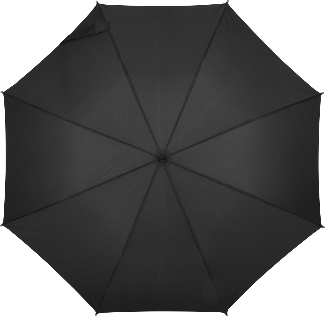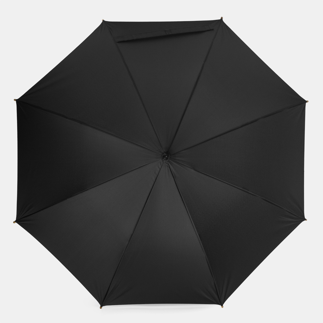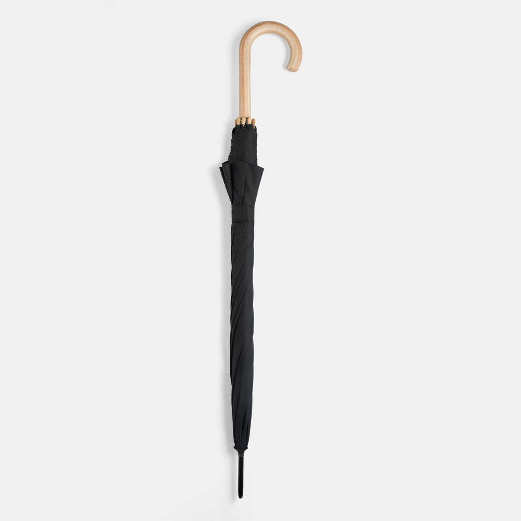 Automatik-Stockschirm LIPSI: Metallstock, Fiberglasspeichen, Holztips und -Rundhakengriff, Polyester-Pongee-Bespannung aus recycelten Kunststoffen / RPET, Schließband mit Klettverschluss