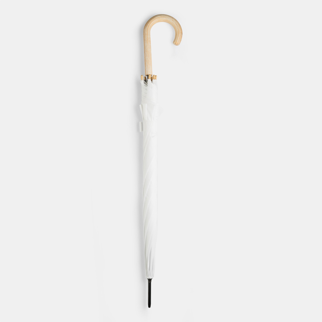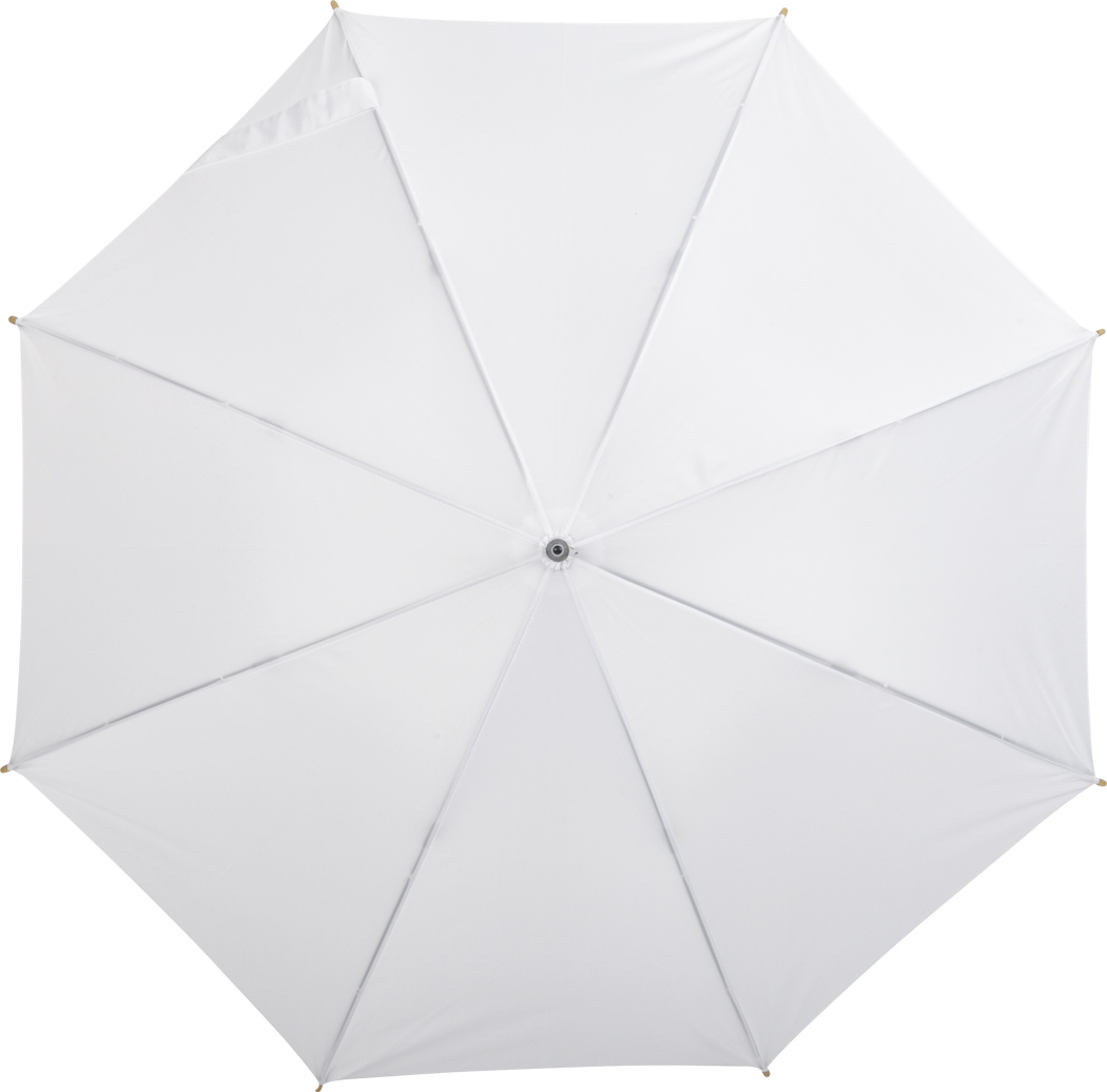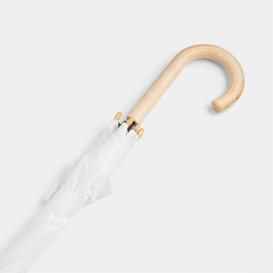 Automatik-Stockschirm LIPSI: Metallstock, Fiberglasspeichen, Holztips und -Rundhakengriff, Polyester-Pongee-Bespannung aus recycelten Kunststoffen / RPET, Schließband mit Klettverschluss